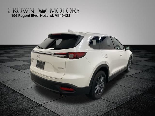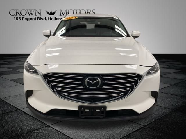 CARFAX One-Owner. Certified. Snowflake White Pearl Mica 2023 Mazda CX-9 Touring AWD 6-Speed Automatic 2.5L 4-Cylinder **ONE OWNER**, ** LOW MILES**, **MAZDA CERTIFIED**, Mazda Certified Pre-Owned Certified, AWD, 3rd row seats: bench, 4-Wheel Disc Brakes, 4.411 Axle Ratio, 6 Speakers, ABS brakes, Air Conditioning, Alloy wheels, Aluminum Roof Rack Side Rails, AM/FM radio, AppLink/Apple CarPlay and Android Auto, Auto High-beam Headlights, Auto-dimming Rear-View mirror, Automatic temperature control, Brake assist, Bumpers: body-color, Compass, Delay-off headlights, Driver door bin, Driver vanity mirror, Dual front impact airbags, Dual front side impact airbags, E911 Automatic Emergency Notification, Electronic Stability Control, Emergency communication system: MAZDA CONNECT, Exterior Parking Camera Rear, Four wheel independent suspension, Front anti-roll bar, Front Bucket Seats, Front Center Armrest, Front dual zone A/C, Front fog lights, Front reading lights, Fully automatic headlights, Garage door transmitter: HomeLink, Heated door mirrors, Heated Front Bucket Seats, Heated front seats, Illuminated entry, Infotainment System Voice Command, Leather Seat Trim, Leather Shift Knob, Leather steering wheel, Low tire pressure warning, Mazda Connected Services, Occupant sensing airbag, Outside temperature display, Overhead airbag, Overhead console, Pandora Internet Radio Integration, Panic alarm, Passenger door bin, Passenger vanity mirror, Power door mirrors, Power driver seat, Power Liftgate, Power moonroof, Power passenger seat, Power steering, Power windows, Radio Broadcast Data System Program Information, Radio data system, Radio: AM/FM Sound System, Rain sensing wipers, Rear air conditioning, Rear anti-roll bar, Rear reading lights, Rear window defroster, Rear window wiper, Remote keyless entry, SMS Text Msg Audio Delivery & Reply, Snowflake White Pearl Mica Paint, Speed control, Speed-sensing steering, Split folding rear seat, Spoiler, Steering wheel mounted audio controls, Tachometer, Telescoping steering wheel, Tilt steering wheel, Traction control, Trip computer, Turn signal indicator mirrors, Variably intermittent wipers, Wheel Locks, Wheels: 18" x 8J Aluminum Alloy, AWD.