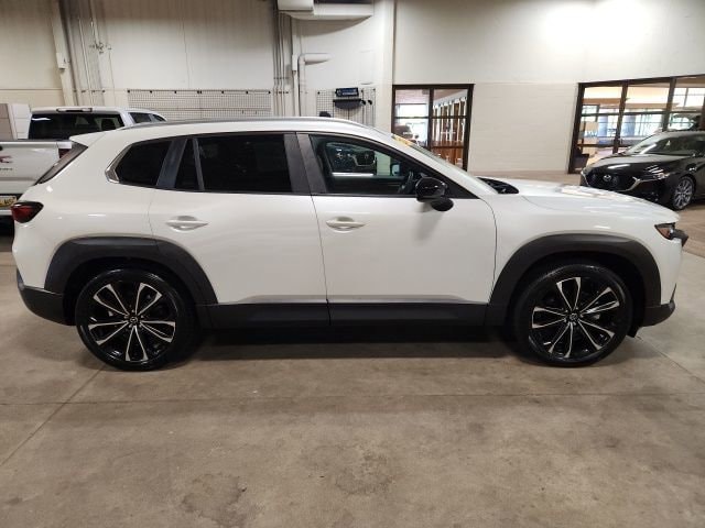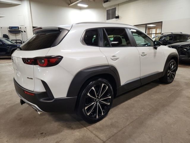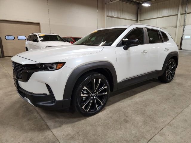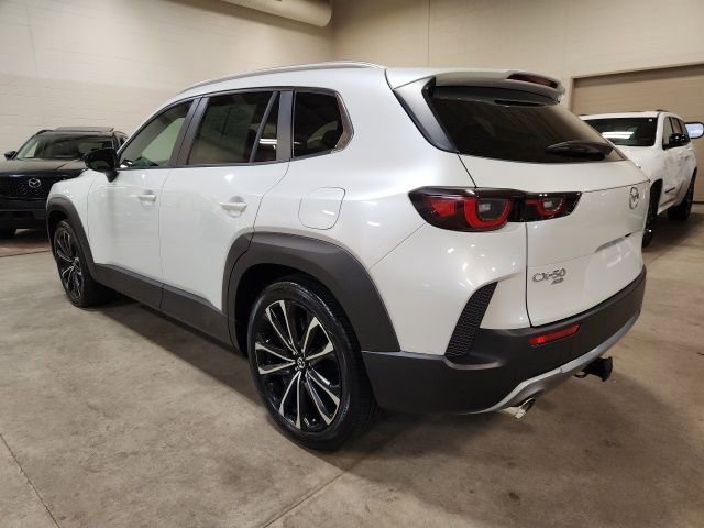 CARFAX One-Owner. Certified. Pearl 2024 Mazda CX-50 2.5 Turbo AWD 6-Speed Automatic 2.5L I4 Turbocharged DOHC 16V LEV3-ULEV70 227hp **ONE OWNER**, ** LOW MILES**, **MAZDA CERTIFIED**, Mazda Certified Pre-Owned Certified, 20" x 8J Aluminum Alloy Wheels, 3.841 Axle Ratio, 4-Wheel Disc Brakes, 8 Speakers, ABS brakes, Air Conditioning, Alloy wheels, AM/FM radio, AppLink/Apple CarPlay and Android Auto, Auto High-beam Headlights, Auto-dimming Rear-View mirror, Automatic temperature control, Brake assist, Bumpers: body-color, Compass, Delay-off headlights, Driver door bin, Driver vanity mirror, Dual front impact airbags, Dual front side impact airbags, Electronic Stability Control, Emergency communication system: MAZDA CONNECT, Exterior Parking Camera Rear, Front anti-roll bar, Front Bucket Seats, Front Center Armrest, Front dual zone A/C, Front reading lights, Front wheel independent suspension, Fully automatic headlights, Garage door transmitter: HomeLink, Heated door mirrors, Heated Front Bucket Seats, Heated front seats, Illuminated entry, Knee airbag, Leather Seat Trim, Leather Shift Knob, Leather steering wheel, Low tire pressure warning, Memory seat, Occupant sensing airbag, Outside temperature display, Overhead airbag, Overhead console, Panic alarm, Passenger door bin, Passenger vanity mirror, Power door mirrors, Power driver seat, Power Liftgate, Power moonroof, Power passenger seat, Power steering, Power windows, Premium Carpet Floor Mats, Radio data system, Radio: AM/FM/HD Audio System, Rain sensing wipers, Rear seat center armrest, Rear window defroster, Rear window wiper, Remote keyless entry, Retractable Cargo Cover, Speed control, Speed-sensing steering, Split folding rear seat, Spoiler, Steering wheel mounted audio controls, Tachometer, Telescoping steering wheel, Tilt steering wheel, Traction control, Trailer Hitch w/7-Pin Harness, Trip computer, Turn signal indicator mirrors, Variably intermittent wipers, Wind Chill Pearl Paint Charge.
