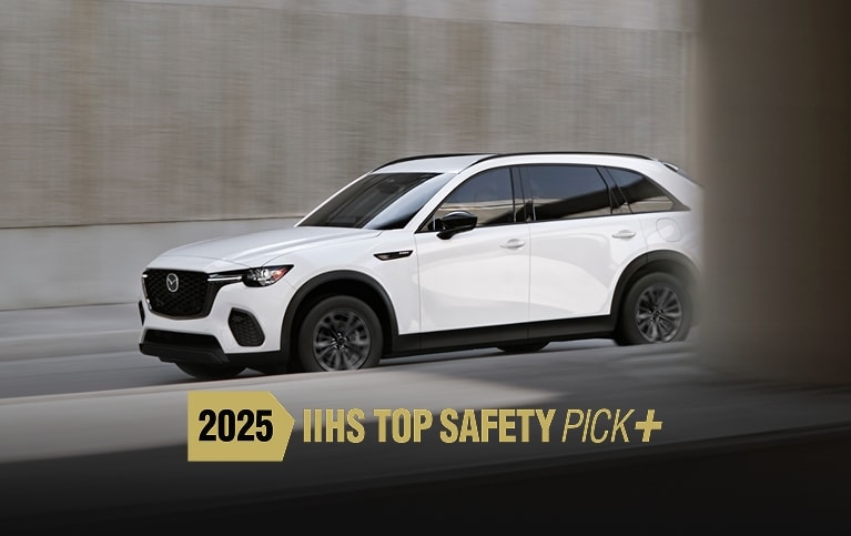 Drive with control and confidence. Eight Mazda vehicles, including the 2026 Mazda CX-70 and CX-70 Plug-In Hybrid EV, have won a 2025 IIHS TOP SAFETY PICK+ award.