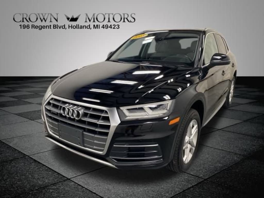 Brilliant Black 2018 Audi Q5 2.0T Premium Plus quattro quattro 7-Speed Automatic S tronic 2.0L TFSI **LEATHER**, **ACCIDENT FREE**, **LOCAL TRADE IN**, Q5 2.0T Premium Plus quattro, Rock Gray Leather, 10 Speakers, 4-Wheel Disc Brakes, 5.302 Axle Ratio, 8-Way Power Front Bucket Seats, ABS brakes, Air Conditioning, Alloy wheels, AM/FM radio, Audi smartphone interface (Apple CarPlay/Android Auto), Auto-dimming Rear-View mirror, Automatic temperature control, Brake assist, Bumpers: body-color, Compass, Delay-off headlights, Driver door bin, Driver vanity mirror, Dual front impact airbags, Dual front side impact airbags, Electronic Stability Control, Exterior Parking Camera Rear, Four wheel independent suspension, Front anti-roll bar, Front Bucket Seats, Front Center Armrest, Front dual zone A/C, Front fog lights, Front reading lights, Garage door transmitter: HomeLink, Genuine wood console insert, Genuine wood dashboard insert, Genuine wood door panel insert, Heated door mirrors, High intensity discharge headlights: Xenon plus, Illuminated entry, Leather Seating Surfaces, Leather Shift Knob, Leather steering wheel, Low tire pressure warning, Occupant sensing airbag, Outside temperature display, Overhead airbag, Overhead console, Panic alarm, Passenger door bin, Passenger vanity mirror, Power door mirrors, Power driver seat, Power Liftgate, Power passenger seat, Power steering, Power windows, Radio data system, Radio: Audi Sound System w/7" TFT Color Display, Rain sensing wipers, Rear air conditioning, Rear anti-roll bar, Rear fog lights, Rear reading lights, Rear seat center armrest, Rear window defroster, Rear window wiper, Remote keyless entry, Roof rack, Security system, Speed control, Speed-sensing steering, Speed-Sensitive Wipers, Split folding rear seat, Spoiler, Steering wheel mounted audio controls, Tachometer, Telescoping steering wheel, Tilt steering wheel, Traction control, Trip computer, Turn signal indicator mirrors, Variably intermittent wipers, Wheels: 8" x 18" 5-Double-Spoke Dynamic Design, Q5 2.0T Premium Plus quattro, Rock Gray Leather.