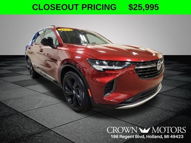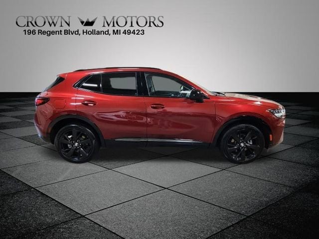 CARFAX One-Owner. Clean CARFAX. Certified. Cinnabar Metallic 2023 Buick Envision Preferred AWD 9-Speed Automatic 2.0L Turbocharged ** LOW MILES**, **GM CERTIFIED**, **ACCIDENT FREE**, Buick Certified Pre-Owned Certified, AWD, 3.47 Final Drive Axle Ratio, 4-Wheel Disc Brakes, 6-Speaker Audio System Feature, 7 Speakers, 7-Speaker Audio System Feature w/Amplifier, 8-Way Power Driver Seat Adjuster, ABS brakes, Air Conditioning, Alloy wheels, AM/FM radio: SiriusXM, Apple CarPlay/Android Auto, Auto High-beam Headlights, Auto-dimming door mirrors, Auto-dimming Rear-View mirror, Automatic Emergency Braking, Automatic temperature control, Black Roof Rails, Body-Color Door Handles, Brake assist, Bumpers: body-color, Carpeted Front & Rear Floor Mats, Cloth w/Leatherette Seat Trim, Compass, Delay-off headlights, Driver door bin, Driver vanity mirror, Dual front impact airbags, Dual front side impact airbags, Electronic Stability Control, Emergency communication system: OnStar and Buick connected services capable, Envision Driver Confidence, Following Distance Indicator, Forward Collision Alert, Four wheel independent suspension, Front anti-roll bar, Front Bin Center Console USB Ports, Front Bucket Seats, Front Center Armrest, Front dual zone A/C, Front Passenger 6-Way Manual Seat Adjuster, Front Pedestrian Braking, Front reading lights, Fully automatic headlights, Heated door mirrors, Heated front seats, Heated steering wheel, Illuminated entry, IntelliBeam Headlamp Control w/Auto High Beam, Knee airbag, Lane Change Alert w/Side Blind Zone Alert, Lane Keep Assist w/Lane Departure Warning, Low tire pressure warning, Lower Trim/Wheel Arch Moldings, Not Equipped w/Driver & Fr Passenger Heated Seats, Not Equipped w/Rear Park Assist, Occupant sensing airbag, Outside temperature display, Overhead airbag, Overhead console, Panic alarm, Passenger door bin, Passenger vanity mirror, Power door mirrors, Power driver seat, Power Liftgate, Power steering, Power windows, Preferred Equipment Group 1SC, Premium audio system: Buick Infotainment System, Radio data system, Radio: Buick Infotainment System AM/FM Stereo, Rear anti-roll bar, Rear Cargo Compartment Cover, Rear Cross Traffic Alert, Rear reading lights, Rear seat center armrest, Rear window defroster, Rear window wiper, Remote keyless entry, Security system, SiriusXM Radio, Speed control, Split folding rear seat, Spoiler, Sport Alloy Pedals, Sport Touring Package, Steering wheel mounted audio controls, Telescoping steering wheel, Tilt steering wheel, Traction control, Trip computer, USB Charging-Only Ports, Variably intermittent wipers, Wheels: 18" Aluminum w/Light Charcoal Met Finish, Wheels: 20" Aluminum w/Dark Finish, Wireless Apple CarPlay/Wireless Android Auto, AWD.