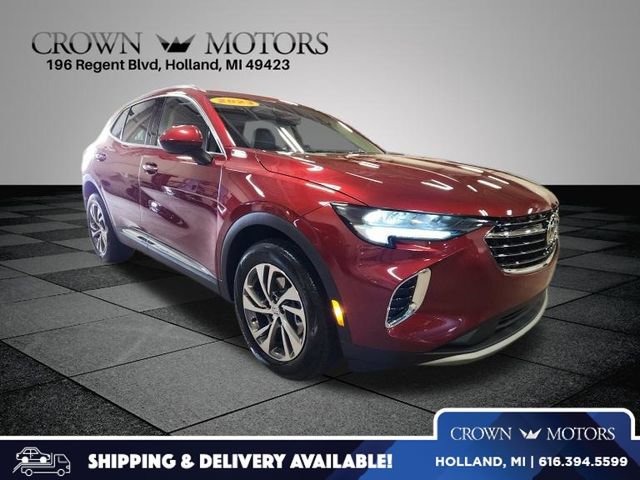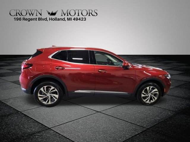 CARFAX One-Owner. Clean CARFAX. Cinnabar Metallic 2023 Buick Envision Essence AWD 9-Speed Automatic 2.0L Turbocharged **ONE OWNER**, ** LOW MILES**, **GM CERTIFIED**, **ACCIDENT FREE**, **LOCAL TRADE IN**, AWD, 3.47 Final Drive Axle Ratio, 4-Wheel Disc Brakes, 7 Speakers, 7-Speaker Audio System Feature w/Amplifier, 8-Way Power Driver Seat Adjuster, ABS brakes, Air Conditioning, Alloy wheels, AM/FM radio: SiriusXM, Apple CarPlay/Android Auto, Auto High-beam Headlights, Auto-dimming door mirrors, Auto-dimming Rear-View mirror, Automatic Emergency Braking, Automatic temperature control, Brake assist, Bumpers: body-color, Compass, Delay-off headlights, Driver door bin, Driver vanity mirror, Dual front impact airbags, Dual front side impact airbags, Electronic Stability Control, Emergency communication system: OnStar and Buick connected services capable, Envision Driver Confidence, Following Distance Indicator, Forward Collision Alert, Four wheel independent suspension, Front anti-roll bar, Front Bin Center Console USB Ports, Front Bucket Seats, Front Center Armrest, Front dual zone A/C, Front Passenger 8-Way Power Seat Adjuster, Front Pedestrian Braking, Front reading lights, Fully automatic headlights, Heated door mirrors, Heated Driver & Front Passenger Seats, Heated front seats, Heated steering wheel, Illuminated entry, IntelliBeam Headlamp Control w/Auto High Beam, Knee airbag, Lane Change Alert w/Side Blind Zone Alert, Lane Keep Assist w/Lane Departure Warning, Low tire pressure warning, Memory seat, Not Equipped w/Lane Change & Rear Cross Traffic Alerts, Not Equipped w/Rear Park Assist, Occupant sensing airbag, Outside temperature display, Overhead airbag, Overhead console, Panic alarm, Passenger door bin, Passenger vanity mirror, Perforated Leather-Appointed Seat Trim, Power door mirrors, Power driver seat, Power Liftgate, Power passenger seat, Power steering, Power windows, Preferred Equipment Group 1SL, Premium audio system: Buick Infotainment System, Radio data system, Radio: Buick Infotainment System AM/FM Stereo, Rear anti-roll bar, Rear Cross Traffic Alert, Rear reading lights, Rear seat center armrest, Rear window defroster, Rear window wiper, Remote keyless entry, Security system, SiriusXM Radio, Speed control, Split folding rear seat, Spoiler, Steering wheel mounted audio controls, Telescoping steering wheel, Tilt steering wheel, Traction control, Trip computer, USB Charging-Only Ports, Variably intermittent wipers, Wheels: 18" Machined Aluminum w/Light Silver Met, Wireless Apple CarPlay/Wireless Android Auto, AWD.