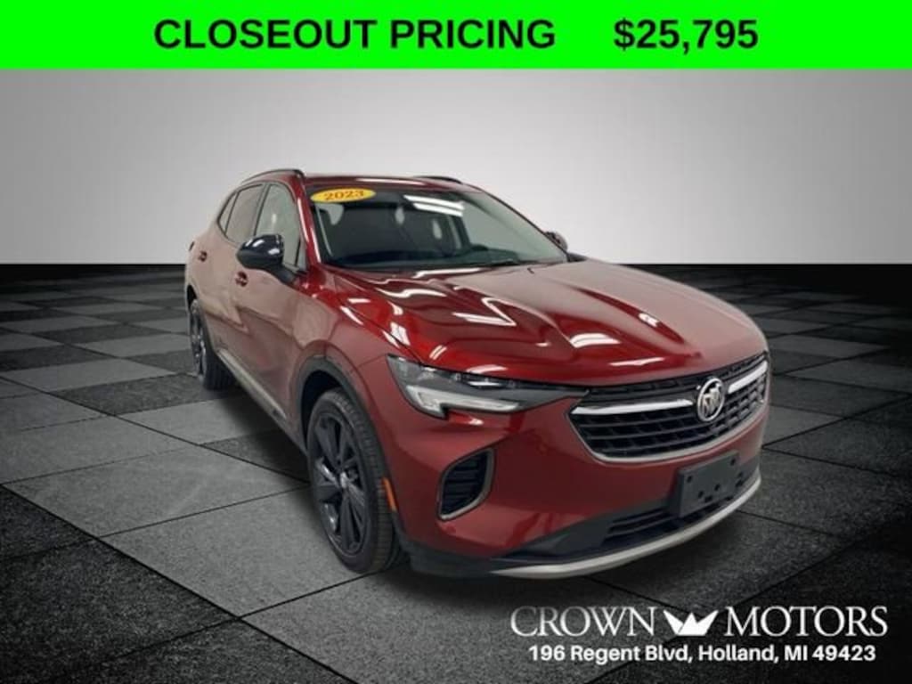 CARFAX One-Owner. Clean CARFAX. Cinnabar Metallic 2023 Buick Envision Essence AWD 9-Speed Automatic 2.0L Turbocharged 3.47 Final Drive Axle Ratio, 4-Wheel Disc Brakes, 7 Speakers, 7-Speaker Audio System Feature w/Amplifier, 8-Way Power Driver Seat Adjuster, ABS brakes, Air Conditioning, Alloy wheels, AM/FM radio: SiriusXM, Apple CarPlay/Android Auto, Auto High-beam Headlights, Auto-dimming door mirrors, Auto-dimming Rear-View mirror, Automatic Emergency Braking, Automatic temperature control, Black Roof Rails, Body-Color Door Handles, Brake assist, Bumpers: body-color, Carpeted Front & Rear Floor Mats, Compass, Delay-off headlights, Driver door bin, Driver vanity mirror, Dual front impact airbags, Dual front side impact airbags, Electronic Stability Control, Emergency communication system: OnStar and Buick connected services capable, Envision Driver Confidence, Following Distance Indicator, Forward Collision Alert, Four wheel independent suspension, Front anti-roll bar, Front Bin Center Console USB Ports, Front Bucket Seats, Front Center Armrest, Front dual zone A/C, Front Passenger 8-Way Power Seat Adjuster, Front Pedestrian Braking, Front reading lights, Fully automatic headlights, Heated door mirrors, Heated Driver & Front Passenger Seats, Heated front seats, Heated steering wheel, Illuminated entry, IntelliBeam Headlamp Control w/Auto High Beam, Knee airbag, Lane Change Alert w/Side Blind Zone Alert, Lane Keep Assist w/Lane Departure Warning, Low tire pressure warning, Lower Trim/Wheel Arch Moldings, Memory seat, Not Equipped w/Driver & Fr Passenger Heated Seats, Not Equipped w/Rear Park Assist, Occupant sensing airbag, Outside temperature display, Overhead airbag, Overhead console, Panic alarm, Passenger door bin, Passenger vanity mirror, Perforated Leather-Appointed Seat Trim, Power door mirrors, Power driver seat, Power Liftgate, Power Panoramic Tilt-Sliding Moonroof, Power passenger seat, Power steering, Power windows, Preferred Equipment Group 1SL, Premium audio system: Buick Infotainment System, Radio data system, Radio: Buick Infotainment System AM/FM Stereo, Rear anti-roll bar, Rear Cargo Compartment Cover, Rear Cross Traffic Alert, Rear reading lights, Rear seat center armrest, Rear window defroster, Rear window wiper, Remote keyless entry, Security system, SiriusXM Radio, Speed control, Split folding rear seat, Spoiler, Sport Alloy Pedals, Sport Touring Package, Steering wheel mounted audio controls, Telescoping steering wheel, Tilt steering wheel, Traction control, Trip computer, USB Charging-Only Ports, Variably intermittent wipers, Wheels: 18" Machined Aluminum w/Light Silver Met, Wheels: 20" Aluminum w/Dark Finish, Wireless Apple CarPlay/Wireless Android Auto.