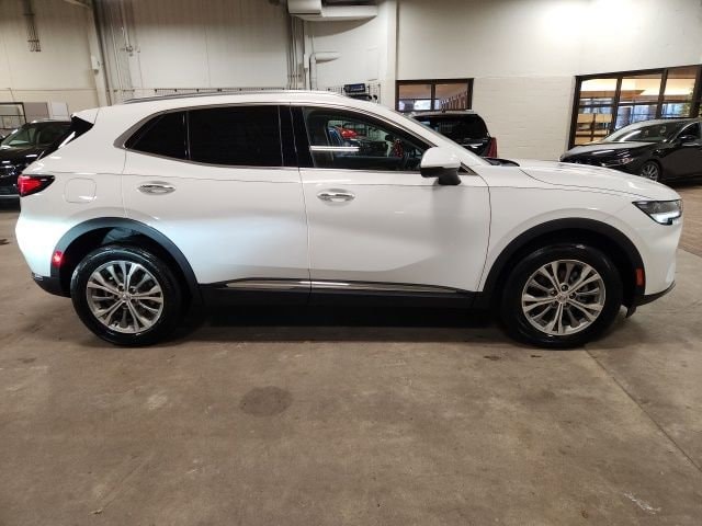 CARFAX One-Owner. Clean CARFAX. Certified. Summit White 2023 Buick Envision Preferred AWD 9-Speed Automatic 2.0L Turbocharged **ONE OWNER**, **ACCIDENT FREE**, Buick Certified Pre-Owned Certified, AWD, 3.47 Final Drive Axle Ratio, 4-Wheel Disc Brakes, 6-Speaker Audio System Feature, 7 Speakers, 7-Speaker Audio System Feature w/Amplifier, 8-Way Power Driver Seat Adjuster, ABS brakes, Air Conditioning, Alloy wheels, AM/FM radio: SiriusXM, Apple CarPlay/Android Auto, Auto High-beam Headlights, Auto-dimming door mirrors, Auto-dimming Rear-View mirror, Automatic Emergency Braking, Automatic temperature control, Brake assist, Bumpers: body-color, Cloth w/Leatherette Seat Trim, Compass, Delay-off headlights, Driver door bin, Driver vanity mirror, Dual front impact airbags, Dual front side impact airbags, Electronic Stability Control, Emergency communication system: OnStar and Buick connected services capable, Envision Driver Confidence, Following Distance Indicator, Forward Collision Alert, Four wheel independent suspension, Front anti-roll bar, Front Bin Center Console USB Ports, Front Bucket Seats, Front Center Armrest, Front dual zone A/C, Front Passenger 6-Way Manual Seat Adjuster, Front Pedestrian Braking, Front reading lights, Fully automatic headlights, Heated door mirrors, Heated front seats, Heated steering wheel, Illuminated entry, IntelliBeam Headlamp Control w/Auto High Beam, Knee airbag, Lane Change Alert w/Side Blind Zone Alert, Lane Keep Assist w/Lane Departure Warning, Low tire pressure warning, Occupant sensing airbag, Outside temperature display, Overhead airbag, Overhead console, Panic alarm, Passenger door bin, Passenger vanity mirror, Power door mirrors, Power driver seat, Power Liftgate, Power steering, Power windows, Preferred Equipment Group 1SC, Premium audio system: Buick Infotainment System, Radio data system, Radio: Buick Infotainment System AM/FM Stereo, Rear anti-roll bar, Rear Cross Traffic Alert, Rear reading lights, Rear seat center armrest, Rear window defroster, Rear window wiper, Remote keyless entry, Security system, SiriusXM Radio, Speed control, Split folding rear seat, Spoiler, Steering wheel mounted audio controls, Telescoping steering wheel, Tilt steering wheel, Traction control, Trip computer, USB Charging-Only Ports, Variably intermittent wipers, Wheels: 18" Aluminum w/Light Charcoal Met Finish, Wireless Apple CarPlay/Wireless Android Auto, AWD.