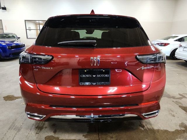 CARFAX One-Owner. Clean CARFAX. Certified. Cinnabar Metallic 2024 Buick Envision Avenir AWD 9-Speed Automatic 2.0L Turbocharged **ONE OWNER**, ** LOW MILES**, **GM CERTIFIED**, **ACCIDENT FREE**, Buick Certified Pre-Owned Certified, AWD, 3.47 Final Drive Axle Ratio, 4-Wheel Disc Brakes, 9 Speakers, ABS brakes, Adaptive suspension, Air Conditioning, Alloy wheels, AM/FM radio: SiriusXM, Auto High-beam Headlights, Auto-dimming door mirrors, Auto-dimming Rear-View mirror, Automatic temperature control, Bose Premium 9-Speaker Audio System Feature, Brake assist, Bumpers: body-color, Compass, Delay-off headlights, Driver 4-Way Power Lumbar Seat Adjuster, Driver 8-Way Power Seat Adjuster, Driver door bin, Driver Seat Massage Control, Driver vanity mirror, Dual front impact airbags, Dual front side impact airbags, Electronic Stability Control, Emergency communication system: OnStar and Buick connected services capable, Four wheel independent suspension, Front anti-roll bar, Front Bucket Seats, Front Center Armrest, Front dual zone A/C, Front Passenger 4-Way Power Lumbar Seat Adjuster, Front Passenger 8-Way Power Seat Adjuster, Front reading lights, Fully automatic headlights, Garage door transmitter, Heads-Up Display, Heated door mirrors, Heated Driver & Front Passenger Seats, Heated front seats, Heated Rear Outboard Seating Positions, Heated rear seats, Heated steering wheel, Illuminated entry, Knee airbag, Leather steering wheel, Low tire pressure warning, Memory seat, Navigation System, Occupant sensing airbag, Outside temperature display, Overhead airbag, Overhead console, Panic alarm, Passenger door bin, Passenger vanity mirror, Power door mirrors, Power driver seat, Power Liftgate, Power moonroof, Power passenger seat, Power steering, Power windows, Preferred Equipment Group 1SU, Premium audio system: Bose, Quilted & Perforated Leather-Appointed Seat Trim, Radio data system, Radio: 30" Diagonal Ultra-Wide Display, Rear anti-roll bar, Rear reading lights, Rear seat center armrest, Rear window defroster, Rear window wiper, Remote keyless entry, Security system, SiriusXM Radio, Speed control, Split folding rear seat, Spoiler, Steering wheel mounted audio controls, Telescoping steering wheel, Tilt steering wheel, Traction control, Trip computer, Variably intermittent wipers, Ventilated Driver & Front Passenger Seats, Ventilated front seats, Wheels: 20" Alloy w/Pearl Nickel Finish, Wireless Apple CarPlay/Wireless Android Auto, AWD.