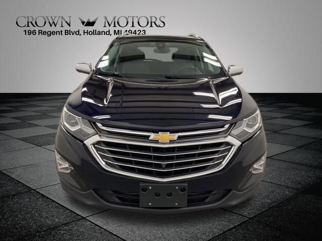 Clean CARFAX. Midnight Blue Metallic 2020 Chevrolet Equinox Premier AWD 6-Speed Automatic Electronic with Overdrive 1.5L DOHC AWD, 18" Aluminum Wheels, 2 Rear USB Charging-Only Ports, 2 USB Data Ports, 2 USB Data Ports w/SD Card Reader, 2-Way Power Driver Lumbar Control Seat Adjuster, 3.87 Final Drive Axle Ratio, 4-Wheel Disc Brakes, 6 Speaker Audio System Feature, 6 Speakers, 8-Way Power Driver Seat Adjuster, 8-Way Power Front Passenger Seat Adjuster, ABS brakes, Adaptive Cruise Control - Camera, Air Conditioning, Alloy wheels, AM/FM radio: SiriusXM, Apple CarPlay/Android Auto, Auto High-beam Headlights, Auto-dimming door mirrors, Auto-dimming Rear-View mirror, Automatic temperature control, Bluetooth® For Phone, Brake assist, Bumpers: body-color, Compass, Confidence & Convenience II Package, Delay-off headlights, Driver Confidence III Package, Driver Convenience II Package, Driver door bin, Driver vanity mirror, Dual front impact airbags, Dual front side impact airbags, Electronic Stability Control, Emergency communication system: OnStar and Chevrolet connected services capable, Four wheel independent suspension, Front anti-roll bar, Front Bucket Seats, Front Center Armrest, Front dual zone A/C, Front fog lights, Front Passenger 4-Way Manual Seat Adjuster, Front reading lights, Fully automatic headlights, Garage door transmitter, HD Surround Vision, Heated door mirrors, Heated Driver & Front Passenger Seats, Heated front seats, Heated Rear Seats, Heated Steering Wheel, Illuminated entry, Low tire pressure warning, Memory seat, Occupant sensing airbag, Outside temperature display, Overhead airbag, Overhead console, Panic alarm, Passenger door bin, Passenger vanity mirror, Perforated Leather-Appointed Seat Trim, Power door mirrors, Power driver seat, Power Liftgate, Power steering, Power Sunroof, Power windows, Preferred Equipment Group 1LZ, Premium audio system: Chevrolet Infotainment 3 Plus, Radio data system, Radio: Chevrolet Infotainment 3 Plus System, Rear anti-roll bar, Rear reading lights, Rear seat center armrest, Rear window defroster, Rear window wiper, Remote keyless entry, Roof rack: rails only, Safety Alert Seat, Security system, Set of 4 Wheel Locks (LPO), SiriusXM Radio, Speed control, Speed-sensing steering, Split folding rear seat, Spoiler, Steering wheel mounted audio controls, Tachometer, Telescoping steering wheel, Tilt steering wheel, Traction control, Trip computer, Turn signal indicator mirrors, Variably intermittent wipers, Ventilated Driver Seat, Ventilated Front Passenger Seat, AWD.