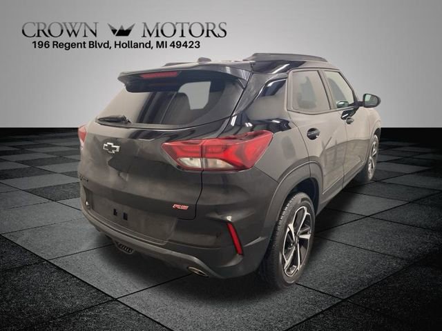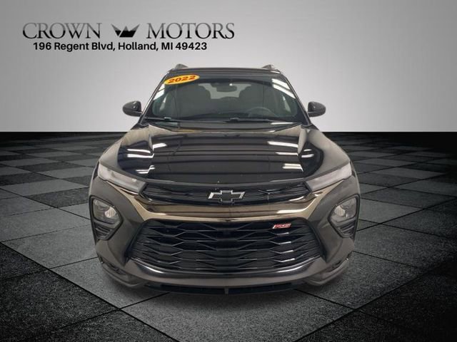 CARFAX One-Owner. Clean CARFAX. Mosaic Black Metallic 2022 Chevrolet TrailBlazer RS AWD 9-Speed Automatic 1.3L Ecotec Turbo DOHC SIDI w/VVT **ACCIDENT FREE**, **LOCAL TRADE IN**, AWD, 2-Way Power Driver Lumbar Seat Adjuster, 3.17 Axle Ratio, 4-Way Manual Front Passenger Seat Adjuster, 4-Wheel Disc Brakes, 6 Speakers, 6-Speaker Audio System Feature w/Amplifier, 8-Way Power Driver Seat Adjuster, ABS brakes, Air Conditioning, Alloy wheels, AM/FM radio: SiriusXM, Auto High-beam Headlights, Brake assist, Bumpers: body-color, Cloth w/Leatherette Seat Trim, Compass, Delay-off headlights, Driver door bin, Driver vanity mirror, Dual front impact airbags, Dual front side impact airbags, Electronic Stability Control, Emergency communication system: OnStar and Chevrolet connected services capable, Exterior Parking Camera Rear, Flat-Folding Front Passenger Seatback, Front anti-roll bar, Front Bucket Seats, Front Center Armrest, Front fog lights, Front reading lights, Front wheel independent suspension, Fully automatic headlights, Heated door mirrors, Heated Driver & Front Passenger Seats, Heated front seats, Heated Steering Wheel, Heated steering wheel, Illuminated entry, Knee airbag, Leather Shift Knob, Leather steering wheel, Low tire pressure warning, Mosaic Black Metallic Roof, Occupant sensing airbag, Overhead airbag, Overhead console, Panic alarm, Passenger door bin, Passenger vanity mirror, Power door mirrors, Power driver seat, Power steering, Power windows, Preferred Equipment Group 1RS, Radio data system, Radio: Chevrolet Infotainment 3 System, Rear seat center armrest, Rear side impact airbag, Rear window defroster, Rear window wiper, Remote keyless entry, Ride & Handling Suspension, Roof rack: rails only, Security system, SiriusXM Radio, Speed control, Split folding rear seat, Spoiler, Steering wheel mounted audio controls, Tachometer, Telescoping steering wheel, Tilt steering wheel, Traction control, Trip computer, Variably intermittent wipers, Wheels: 18" High Gloss Black Machined Aluminum, Wireless Apple CarPlay/Android Auto, AWD.