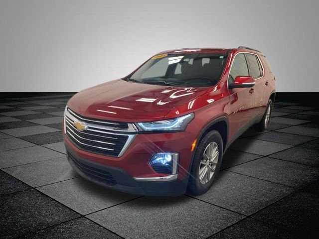 Clean CARFAX. Radiant Red Tintcoat 2023 Chevrolet Traverse LT 1LT AWD 9-Speed Automatic 3.6L V6 SIDI VVT AWD, 2-Way Manual Front Passenger Seat Adjuster, 3.49 Axle Ratio, 3rd row seats: split-bench, 4-Wheel Disc Brakes, 6 Speakers, 6-Speaker Audio System Feature, 8-Way Power Driver Seat Adjuster, ABS brakes, Air Conditioning, Alloy wheels, AM/FM radio: SiriusXM, Apple CarPlay/Android Auto, Auto High-beam Headlights, Automatic temperature control, Black Roof Rails, Brake assist, Bumpers: body-color, Compass, Delay-off headlights, Driver door bin, Driver vanity mirror, Dual front impact airbags, Dual front side impact airbags, Electronic Stability Control, Emergency communication system, Exterior Parking Camera Rear, Four wheel independent suspension, Front anti-roll bar, Front Bucket Seats, Front Center Armrest, Front dual zone A/C, Front reading lights, Fully automatic headlights, Garage door transmitter, Heated door mirrors, Heated Driver & Front Passenger Seats, Heated front seats, Illuminated entry, Leather steering wheel, Low tire pressure warning, Not Equipped w/Rear Park Assist (060), Occupant sensing airbag, Outside temperature display, Overhead airbag, Overhead console, Panic alarm, Passenger door bin, Passenger vanity mirror, Power door mirrors, Power Driver Lumbar Control, Power driver seat, Power Liftgate, Power steering, Power windows, Preferred Equipment Group 1LT, Premium Cloth Seat Trim, Radio data system, Radio: Chevrolet Infotainment 3 Plus System, Rear air conditioning, Rear anti-roll bar, Rear reading lights, Rear window defroster, Rear window wiper, Remote keyless entry, Security system, SiriusXM w/360L, Speed control, Speed-sensing steering, Spoiler, Steering wheel mounted audio controls, Tachometer, Telescoping steering wheel, Tilt steering wheel, Traction control, Trip computer, Turn signal indicator mirrors, Variably intermittent wipers, Voltmeter, Wheels: 18" Bright Silver-Painted Aluminum, AWD.