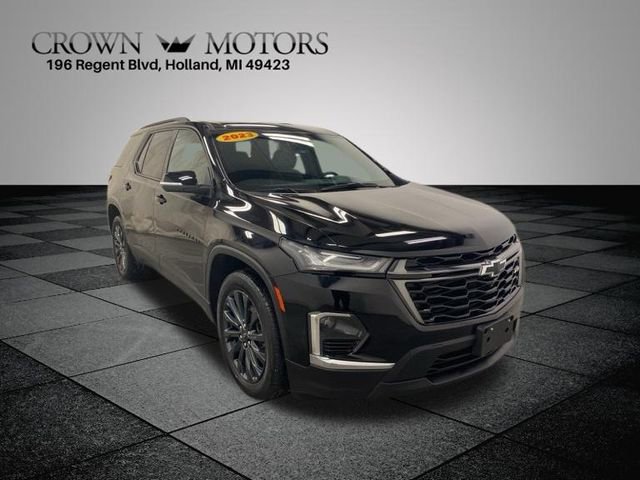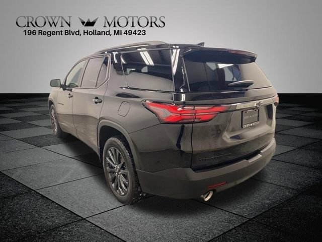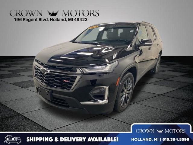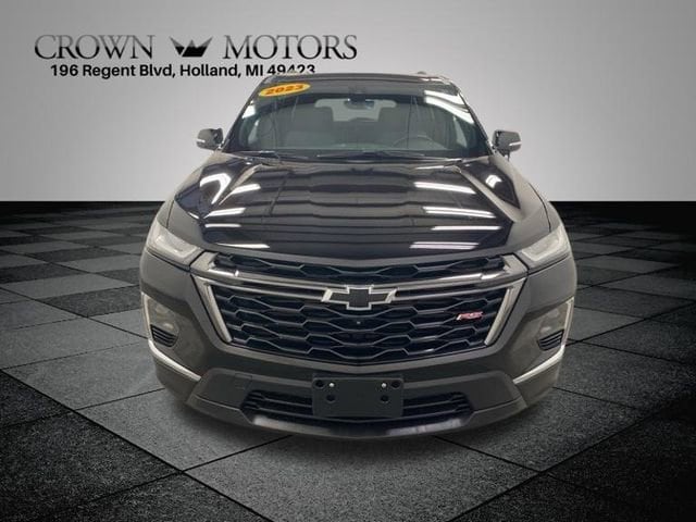 CARFAX One-Owner. Clean CARFAX. Certified. Mosaic Black Metallic 2023 Chevrolet Traverse RS AWD 9-Speed Automatic 3.6L V6 SIDI VVT **ONE OWNER**, ** LOW MILES**, **GM CERTIFIED**, **ACCIDENT FREE**, Chevrolet Certified Pre-Owned Certified, AWD, 10 Speakers, 1st & 2nd Row All-Weather Floor Mats, 3.49 Axle Ratio, 3rd Row All-Weather Floor Mats, 3rd row seats: split-bench, 4-Wheel Disc Brakes, 6-Way Power Front Passenger Seat, 8-Way Power Driver Seat Adjuster, ABS brakes, Air Conditioning, All-Weather Cargo Mat (LPO), Alloy wheels, AM/FM radio: SiriusXM with 360L, Apple CarPlay/Android Auto, Auto High-beam Headlights, Auto-dimming Rear-View mirror, Automatic temperature control, Bose Premium 10-Speaker Audio System Feature, Brake assist, Bumpers: body-color, Compass, Delay-off headlights, Driver door bin, Driver vanity mirror, Dual front impact airbags, Dual front side impact airbags, Dual SkyScape 2-Panel Power Sunroof, Electronic Stability Control, Emergency communication system, Exterior Parking Camera Rear, Four wheel independent suspension, Front anti-roll bar, Front Bucket Seats, Front Center Armrest, Front dual zone A/C, Front License Plate Bracket Mounting Package, Front Passenger 2-Way Power Lumbar, Front reading lights, Fully automatic headlights, Garage door transmitter, Heated door mirrors, Heated Driver & Front Passenger Seats, Heated front seats, Heated steering wheel, Illuminated entry, Interior Protection Package (LPO), Leather steering wheel, Low tire pressure warning, Navigation System, Not Equipped w/Rear Park Assist (060), Occupant sensing airbag, Outside temperature display, Overhead airbag, Overhead console, Panic alarm, Passenger door bin, Passenger vanity mirror, Perforated Leather-Appointed Seat Trim, Power door mirrors, Power Driver Lumbar Control, Power driver seat, Power Liftgate, Power passenger seat, Power steering, Power windows, Preferred Equipment Group 2LT, Premium audio system: Chevrolet Infotainment 3 Plus, Radio data system, Radio: Chevrolet Infotainment 3 Plus System w/Navi, Rear air conditioning, Rear anti-roll bar, Rear reading lights, Rear window defroster, Rear window wiper, Remote keyless entry, Security system, SiriusXM w/360L, Speed control, Speed-sensing steering, Spoiler, Steering wheel mounted audio controls, Tachometer, Telescoping steering wheel, Tilt steering wheel, Traction control, Trip computer, Turn signal indicator mirrors, Variably intermittent wipers, Voltmeter, Wheels: 20" Dark Aluminum, AWD.