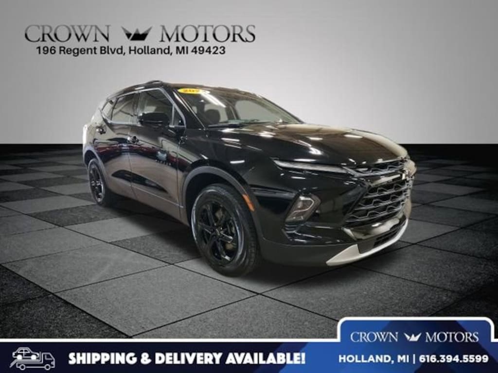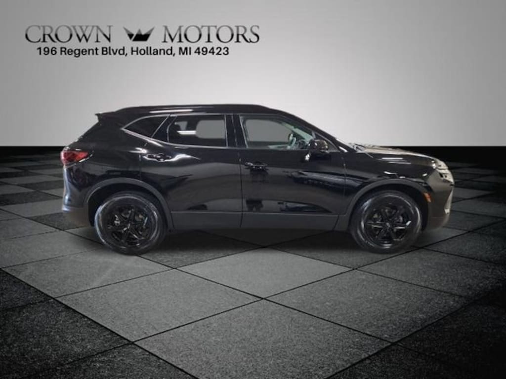 Clean CARFAX. Certified. Black 2024 Chevrolet Blazer LT AWD 9-Speed Automatic with Overdrive 2.0L Turbocharged Chevrolet Certified Pre-Owned Certified, AWD, 170 Amp Alternator, 3.47 Final Drive Axle Ratio, 4-Way Manual Front Passenger Seat Adjuster, 4-Wheel Disc Brakes, 6 Speakers, 6-Speaker Audio System Feature, 8-Way Power Driver Seat Adjuster, ABS brakes, Adaptive Cruise Control, Air Conditioning, Alloy wheels, AM/FM radio: SiriusXM with 360L, Apple CarPlay/Android Auto, Auto High-beam Headlights, Automatic temperature control, Black Lug Nut & Wheel Lock Kit (LPO), Black Roof-Mounted Side Rails, Brake assist, Bumpers: body-color, Cargo Package (LPO), Child-Seat-Sensing Airbag, Compass, Convenience Package, Delay-off headlights, Driver Confidence Package, Driver door bin, Driver vanity mirror, Dual front impact airbags, Dual front side impact airbags, Electronic Stability Control, Emergency communication system: OnStar and Chevrolet connected services capable, Enhanced Automatic Emergency Braking, Four wheel independent suspension, Front & Rear Black Bowties, Front anti-roll bar, Front Bucket Seats, Front Center Armrest, Front dual zone A/C, Front reading lights, Fully automatic headlights, Heated door mirrors, Heated Driver & Front Passenger Seats, Heated front seats, Illuminated entry, Inside Rear-View Auto-Dimming Mirror, Interior Protection Package (LPO), Knee airbag, Lane Change Alert w/Side Blind Zone Alert, Leather Shift Knob, Low tire pressure warning, Midnight/Sport Edition, Occupant sensing airbag, Outside temperature display, Overhead airbag, Overhead console, Panic alarm, Passenger door bin, Passenger vanity mirror, Power door mirrors, Power Driver Lumbar Control, Power driver seat, Power steering, Power windows, Preferred Equipment Group 2LT, Premium All-Weather Cargo Mat (LPO), Premium All-Weather Floor Mats, Premium audio system: Chevrolet Infotainment 3 Plus, Premium Cloth Seat Trim, Radio data system, Radio: Chevrolet Infotainment 3 Plus System, Rear anti-roll bar, Rear Cross Traffic Alert, Rear Park Assist w/Audible Warning, Rear Power Programmable Liftgate, Rear reading lights, Rear seat center armrest, Rear window defroster, Rear window wiper, Remote keyless entry, Retractable Cargo Shade, Ride & Handling Suspension, Security system, SiriusXM w/360L, Speed control, Speed-sensing steering, Split folding rear seat, Spoiler, Steering wheel mounted audio controls, Tachometer, Telescoping steering wheel, Tilt steering wheel, Traction control, Trip computer, Universal Home Remote, Variably intermittent wipers, Vertical Cargo Net (LPO), Voltmeter, Wheels: 18" Grazen Metallic Aluminum, Wheels: 18" High Gloss Black Painted Aluminum, Wireless Charging, AWD.