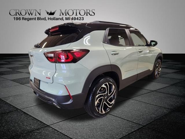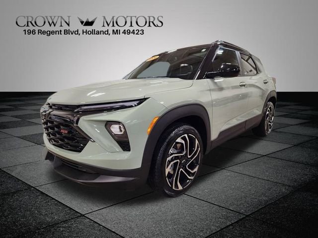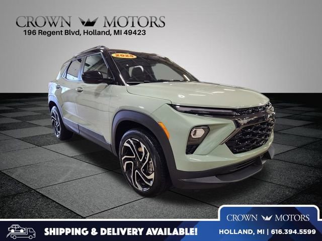CARFAX One-Owner. Clean CARFAX. Certified. Cacti Green 2024 Chevrolet TrailBlazer RS AWD 9-Speed Automatic 1.3L Ecotec Turbo DOHC SIDI w/VVT **ONE OWNER**, ** LOW MILES**, **GM CERTIFIED**, **ACCIDENT FREE**, **LOCAL TRADE IN**, Chevrolet Certified Pre-Owned Certified, AWD, 1 Type-A & 1 Type-C USB Charging-Only Ports, 1 Type-A & 1 Type-C USB Ports, 11" Diagonal HD Color Touchscreen, 120-Volt Power Outlet, 2-Way Power Driver Lumbar Seat Adjuster, 3.17 Final Drive Axle Ratio, 4-Way Manual Front Passenger Seat Adjuster, 4-Wheel Disc Brakes, 6 Speakers, 6-Speaker Audio System Feature w/Amplifier, 8-Way Power Driver Seat Adjuster, ABS brakes, Air Conditioning, Alloy wheels, AM/FM radio: SiriusXM, Auto High-beam Headlights, Brake assist, Bumpers: body-color, Cabin Humidity Sensor, Chevrolet Connected Access Capable, Compass, Convenience Package, Delay-off headlights, Driver & Front Passenger Illuminated Vanity Mirrors, Driver Confidence Package, Driver door bin, Driver vanity mirror, Dual front impact airbags, Dual front side impact airbags, Dual-Pane Panoramic Power Sunroof, Electronic Stability Control, Emergency communication system: OnStar and Chevrolet connected services capable, Evotex Seat Trim, Exterior Parking Camera Rear, Flat-Folding Front Passenger Seatback, Front & Rear All-Weather Floor Liners (LPO), Front anti-roll bar, Front Bucket Seats, Front Center Armrest, Front reading lights, Front wheel independent suspension, Fully automatic headlights, Hands-Free Power Programmable Liftgate, Heated door mirrors, Heated Driver & Front Passenger Seats, Heated front seats, Heated steering wheel, Illuminated entry, Inside Rear-View Auto-Dimming Mirror, Knee airbag, Lane Change Alert w/Side Blind Zone Alert, Low tire pressure warning, Mosaic Black Metallic Two-Tone Roof, Occupant sensing airbag, Overhead airbag, Overhead console, Panic alarm, Passenger door bin, Passenger vanity mirror, Power door mirrors, Power driver seat, Power steering, Power windows, Preferred Equipment Group 1RS, Premium Carpeted Floor Mats, Radio data system, Radio: AM/FM Stereo Audio System, Rear Cross Traffic Alert, Rear Park Assist, Rear seat center armrest, Rear side impact airbag, Rear window defroster, Rear window wiper, Remote keyless entry, Ride & Handling Suspension, Security system, Single-Zone Auto Climate Control Air Conditioning, SiriusXM, Speed control, Split folding rear seat, Spoiler, Steering wheel mounted audio controls, Tachometer, Telescoping steering wheel, Tilt steering wheel, Traction control, Trip computer, Variably intermittent wipers, Wheels: 19" High Gloss Black Machined Aluminum, Winter/Summer Floor Mat Package (LPO), Wireless Apple CarPlay/Android Auto, Wireless Charging, AWD.