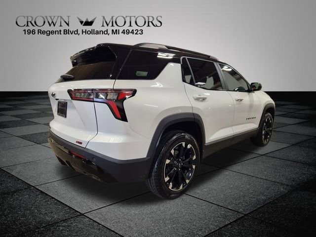 CARFAX One-Owner. Clean CARFAX. Certified. Pearl 2025 Chevrolet Equinox RS AWD 8-Speed Automatic 1.5L DOHC **ONE OWNER**, ** LOW MILES**, **ACCIDENT FREE**, **LOCAL TRADE IN**, Car Bravo Certified, AWD, 2-Way Power Driver Lumbar Control Seat Adjuster, 3.47 Final Drive Axle Ratio, 4-Wheel Disc Brakes, 6 Speakers, ABS brakes, Air Conditioning, Alloy wheels, AM/FM radio: SiriusXM, Auto High-beam Headlights, Automatic temperature control, Brake assist, Bumpers: body-color, Compass, Delay-off headlights, Driver 8-Way Power Seat Adjuster, Driver door bin, Driver vanity mirror, Dual front impact airbags, Dual front side impact airbags, Electronic Stability Control, Emergency communication system: OnStar and Chevrolet connected services capable, Evotex Seat Trim, Four wheel independent suspension, Front anti-roll bar, Front Bucket Seats, Front Center Armrest, Front dual zone A/C, Front Passenger 4-Way Manual Seat Adjuster, Front reading lights, Fully automatic headlights, Garage door transmitter, Heated door mirrors, Heated Driver & Front Passenger Seats, Heated front seats, Heated steering wheel, Illuminated entry, Low tire pressure warning, Mosaic Black Metallic Roof, Navigation System, Occupant sensing airbag, Outside temperature display, Overhead airbag, Overhead console, Panic alarm, Passenger door bin, Passenger vanity mirror, Power door mirrors, Power driver seat, Power Liftgate, Power steering, Power windows, Preferred Equipment Group 2RS, Premium audio system: Chevrolet Infotainment 3, Radio data system, Radio: 11.3" Diagonal Advanced Color LCD Display, Rain sensing wipers, Rear anti-roll bar, Rear reading lights, Rear seat center armrest, Rear window defroster, Rear window wiper, Remote keyless entry, Security system, SiriusXM, Speed control, Speed-sensing steering, Split folding rear seat, Spoiler, Sport steering wheel, Steering wheel mounted audio controls, Tachometer, Telescoping steering wheel, Tilt steering wheel, Traction control, Trip computer, Universal Home Remote Non-Functional, Variably intermittent wipers, Wheels: 19" Carbon Flash Metallic Aluminum, AWD.