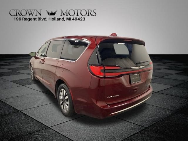 Velvet Red Pearlcoat 2022 Chrysler Pacifica Hybrid Touring L FWD CVT 3.6L V6 3.6L V6, ParkSense Rear Park Assist w/Stop, ParkView Rear Back-Up Camera, Quick Order Package 2EL, Safety Sphere Unavailable, 10.1" Touchscreen Display, 3.59 Axle Ratio, 3rd row seats: split-bench, 4-Wheel Disc Brakes, 6 Speakers, ABS brakes, Air Conditioning, Alloy wheels, AM/FM radio: SiriusXM, Apple CarPlay, Apple CarPlay/Android Auto, Auto-dimming Rear-View mirror, Automatic temperature control, Black Seats, Brake assist, Bumpers: body-color, Compass, Delay-off headlights, Disassociated Touchscreen Display, Driver door bin, Driver vanity mirror, Driver's Seat Mounted Armrest, Dual front impact airbags, Dual front side impact airbags, Electronic Stability Control, Emergency communication system: Uconnect Access, Exterior Parking Camera Rear, For More Info, Call 800-643-2112, Four wheel independent suspension, Front anti-roll bar, Front Bucket Seats, Front dual zone A/C, Front Fascia Air Deflectors, Front fog lights, Front reading lights, Fully automatic headlights, Garage door transmitter, Google Android Auto, GPS Antenna Input, Heated door mirrors, Heated front seats, Heated steering wheel, Heavy Duty Suspension, Illuminated entry, Integrated Active Noise Cancellation, Integrated Center Stack Radio, Knee airbag, Low tire pressure warning, Memory seat, Occupant sensing airbag, Outside temperature display, Overhead airbag, Overhead console, Panic alarm, ParkSense Rear Park Assist Unavailable, Passenger door bin, Passenger seat mounted armrest, Passenger vanity mirror, Perforated Leather Trim Bucket Seats, Power door mirrors, Power driver seat, Power Liftgate, Power steering, Power windows, Radio data system, Radio: Uconnect 5 w/10.1" Display, Rain sensing wipers, Rear air conditioning, Rear reading lights, Rear window defroster, Rear window wiper, Reclining 3rd row seat, Remote keyless entry, Security system, SiriusXM Radio Service, SiriusXM Satellite Radio, Speed control, Split folding rear seat, Spoiler, Steering wheel mounted audio controls, Tachometer, Telescoping steering wheel, Tilt steering wheel, Traction control, Trip computer, Turn signal indicator mirrors, USB Host Flip, Variably intermittent wipers, Voltmeter, Wheels: 17" x 7.0" Diamond Cut w/Painted Pockets, 3.6L V6, ParkSense Rear Park Assist w/Stop, ParkView Rear Back-Up Camera, Quick Order Package 2EL, Safety Sphere Unavailable.