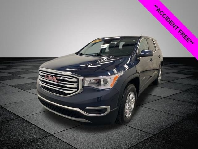 CARFAX One-Owner. Clean CARFAX. Blue Steel Metallic 2019 GMC Acadia SLE-1 FWD 6-Speed Automatic 2.5L 4-Cylinder DGI DOHC VVT **ONE OWNER**, **ACCIDENT FREE**, **LOCAL TRADE IN**, FWD, Jet Black Cloth, 17" x 7.5" Aluminum Wheels, 3.87 Axle Ratio, 3rd Row All-Weather Floor Liner (LPO), 3rd row seats: split-bench, 4-Wheel Disc Brakes, 6 Speakers, 6-Speaker Audio System Feature, 7-Passenger (2-3-2 Seating Configuration), ABS brakes, Air Conditioning, All-Weather Floor Liner (LPO), Alloy wheels, AM/FM radio: SiriusXM, Apple CarPlay/Android Auto, Automatic temperature control, Brake assist, Bumpers: body-color, Compass, Delay-off headlights, Driver door bin, Driver vanity mirror, Dual front impact airbags, Dual front side impact airbags, Electronic Stability Control, Emergency communication system: OnStar and GMC connected services capable, Exterior Parking Camera Rear, Floor Liner Package (LPO), Four wheel independent suspension, Front anti-roll bar, Front Bucket Seats, Front Center Armrest, Front dual zone A/C, Front reading lights, Fully automatic headlights, Heated door mirrors, Illuminated entry, Integrated Cargo Liner (LPO) (DISC), Knee airbag, Low tire pressure warning, Occupant sensing airbag, Outside temperature display, Overhead airbag, Overhead console, Panic alarm, Passenger door bin, Passenger vanity mirror, Power door mirrors, Power steering, Power windows, Preferred Equipment Group 3SA, Premium audio system: GMC Infotainment System, Premium Cloth Seat Trim, Radio data system, Radio: AM/FM w/7" Diagonal Color Touch Screen, Rear air conditioning, Rear anti-roll bar, Rear reading lights, Rear seat center armrest, Rear window defroster, Rear window wiper, Remote keyless entry, Security system, SiriusXM Radio, Speed control, Speed-sensing steering, Split folding rear seat, Spoiler, Steering wheel mounted audio controls, Stop-Start Engine Control System, Tachometer, Telescoping steering wheel, Tilt steering wheel, Traction control, Trip computer, Variably intermittent wipers, Voltmeter, FWD, Jet Black Cloth.