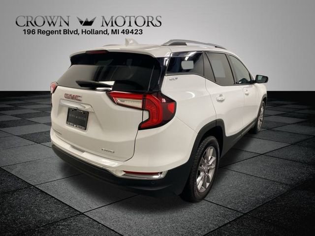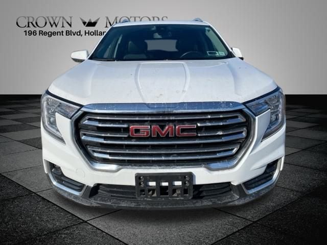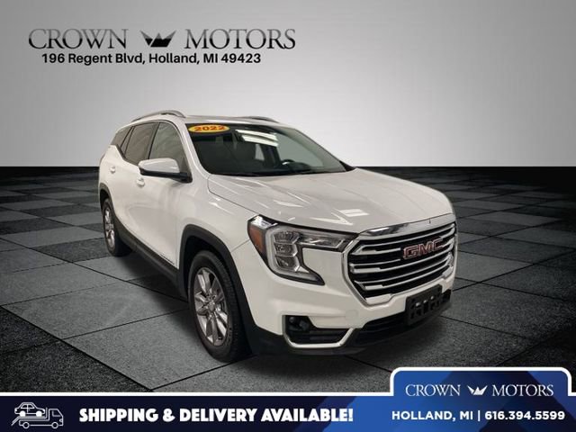 CARFAX One-Owner. Summit White 2022 GMC Terrain SLT AWD 9-Speed Automatic 1.5L DOHC **ONE OWNER**, AWD, 2 USB Data Ports, 2 USB Data Ports w/SD Card Reader, 3 Years of OnStar & Connected Services Plan, 3.47 Axle Ratio, 4-Wheel Disc Brakes, 6 Speakers, 6-Speaker Audio System Feature, 6-Way Power Front Passenger Seat, 8-Way Power Driver Seat Adjuster, ABS brakes, Adaptive Cruise Control, Air Conditioning, Alloy wheels, AM/FM radio: SiriusXM, Auto High-beam Headlights, Auto-dimming Rear-View mirror, Automatic temperature control, Bluetooth® For Phone, Brake assist, Bumpers: body-color, Compass, Delay-off headlights, Driver & Front Passenger Heated Seats, Driver door bin, Driver vanity mirror, Dual front impact airbags, Dual front side impact airbags, Electronic Stability Control, Emergency communication system: OnStar Guidance, Four wheel independent suspension, Front anti-roll bar, Front Bucket Seats, Front Center Armrest, Front dual zone A/C, Front fog lights, Front Passenger 2-Way Power Lumbar, Front reading lights, Fully automatic headlights, Garage door transmitter, GMC Pro Safety Plus, Heated door mirrors, Heated front seats, Heated steering wheel, Illuminated entry, Infotainment Package II, Lane Change Alert w/Side Blind Zone Alert, Lane Departure Warning System, License Plate Front Mounting Package, Low tire pressure warning, Memory seat, Not Equipped w/Lane Change & Rear Cross Traffic Alerts, Occupant sensing airbag, Outside temperature display, Overhead airbag, Overhead console, Panic alarm, Passenger door bin, Passenger vanity mirror, Perforated Leather-Appointed Seat Trim, Power door mirrors, Power Driver Lumbar Control, Power driver seat, Power Liftgate, Power passenger seat, Power steering, Power windows, Preferred Equipment Group 4SA, Premium 7-Speaker Bose Sound System w/Amplifier, Radio data system, Radio: GMC Infotainment Audio System w/8" Display, Radio: GMC Infotainment Audio System w/Navigation, Rear anti-roll bar, Rear Cross-Traffic Alert, Rear Park Assist, Rear seat center armrest, Rear window defroster, Rear window wiper, Remote keyless entry, Roof rack: rails only, Safety Alert Seat, Security system, SiriusXM Radio, Skyscape Power Sunroof w/Power Sunscreen, Speed control, Speed-sensing steering, Split folding rear seat, Spoiler, Steering wheel mounted audio controls, Tachometer, Telescoping steering wheel, Tilt steering wheel, Traction control, Trip computer, Turn signal indicator mirrors, Variably intermittent wipers, Wheels: 18" x 7" Silver Painted Aluminum, Wireless Apple CarPlay/Wireless Android Auto, AWD.