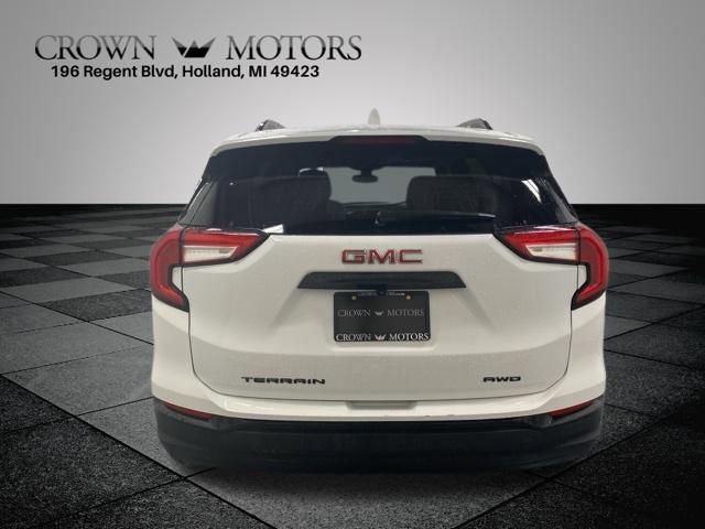 CARFAX One-Owner. Clean CARFAX. Summit White 2022 GMC Terrain SLT AWD 9-Speed Automatic 1.5L DOHC **ONE OWNER**, ** LOW MILES**, **ACCIDENT FREE**, AWD, 2 USB Data Ports, 2 USB Data Ports w/SD Card Reader, 3 Years of OnStar & Connected Services Plan, 3.47 Axle Ratio, 4-Wheel Disc Brakes, 6 Speakers, 6-Speaker Audio System Feature, 6-Way Power Front Passenger Seat, 8-Way Power Driver Seat Adjuster, ABS brakes, Air Conditioning, Alloy wheels, AM/FM radio: SiriusXM, Auto High-beam Headlights, Auto-dimming Rear-View mirror, Automatic temperature control, Black GMC Center Caps w/Red GMC Lettering, Black Mirror Caps, Bluetooth® For Phone, Brake assist, Bumpers: body-color, Compass, Darkened Front Grille, Delay-off headlights, Driver & Front Passenger Heated Seats, Driver door bin, Driver vanity mirror, Dual front impact airbags, Dual front side impact airbags, Electronic Stability Control, Elevation Edition, Emergency communication system: OnStar Guidance, Four wheel independent suspension, Front anti-roll bar, Front Bucket Seats, Front Center Armrest, Front dual zone A/C, Front fog lights, Front Passenger 2-Way Power Lumbar, Front reading lights, Fully automatic headlights, Garage door transmitter, Heated door mirrors, Heated front seats, Heated steering wheel, Illuminated entry, Lane Departure Warning System, Low tire pressure warning, Memory seat, Occupant sensing airbag, Outside temperature display, Overhead airbag, Overhead console, Panic alarm, Passenger door bin, Passenger vanity mirror, Perforated Leather-Appointed Seat Trim, Power door mirrors, Power Driver Lumbar Control, Power driver seat, Power Liftgate, Power passenger seat, Power steering, Power windows, Preferred Equipment Group 4SA, Radio data system, Radio: GMC Infotainment Audio System w/8" Display, Rear anti-roll bar, Rear seat center armrest, Rear window defroster, Rear window wiper, Remote keyless entry, Roof rack: rails only, Roof-Mounted Luggage Rack Side Rails, Security system, SiriusXM Radio, Skyscape Power Sunroof w/Power Sunscreen, Speed control, Speed-sensing steering, Split folding rear seat, Spoiler, Steering wheel mounted audio controls, Tachometer, Telescoping steering wheel, Tilt steering wheel, Traction control, Trip computer, Turn signal indicator mirrors, Variably intermittent wipers, Wheels: 18" x 7" Silver Painted Aluminum, Wheels: 19" x 7.5" Gloss Black Painted Aluminum, Wireless Apple CarPlay/Wireless Android Auto, AWD.