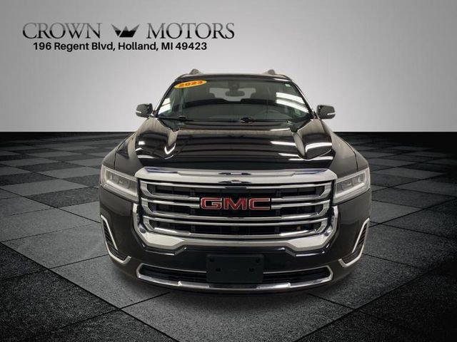 CARFAX One-Owner. Clean CARFAX. Ebony Twilight Metallic 2023 GMC Acadia SLE AWD 9-Speed Automatic 2.0L Turbocharged **ONE OWNER**, **ACCIDENT FREE**, AWD, Black Cloth, 120-Volt Power Outlet, 3.47 Final Drive Axle Ratio, 3rd row seats: split-bench, 4-Way Manual Driver Seat Adjuster, 4-Way Manual Passenger Seat Adjuster, 4-Wheel Disc Brakes, 6 Speakers, 6-Passenger (2-2-2 Seating Configuration), 6-Speaker Audio System Feature, 8-Way Power Driver Seat Adjuster, ABS brakes, Air Conditioning, Alloy wheels, AM/FM radio: SiriusXM, Apple CarPlay/Android Auto, Auto High-beam Headlights, Automatic temperature control, Brake assist, Brushed Aluminum Roof Rails, Bumpers: body-color, Compass, Delay-off headlights, Driver Convenience Package, Driver door bin, Driver vanity mirror, Dual front impact airbags, Dual front side impact airbags, Dual SkyScape 2-Panel Power Sunroof, Electronic Stability Control, Emergency communication system: OnStar and GMC connected services capable, Four wheel independent suspension, Front anti-roll bar, Front Bucket Seats, Front Center Armrest, Front dual zone A/C, Front License Plate Bracket, Front reading lights, Fully automatic headlights, Hands Free Power Programmable Liftgate, Heated door mirrors, Heated Driver & Front Passenger Seats, Illuminated entry, Knee airbag, Low tire pressure warning, Occupant sensing airbag, Outside temperature display, Overhead airbag, Overhead console, Panic alarm, Passenger door bin, Passenger vanity mirror, Power door mirrors, Power Driver Lumbar Control Seat Adjuster, Power steering, Power windows, Preferred Equipment Group 3SA, Premium Cloth Seat Trim, Radio data system, Radio: AM/FM w/8" Diagonal Multi-Touch Display, Rear air conditioning, Rear anti-roll bar, Rear reading lights, Rear window defroster, Rear window wiper, Remote keyless entry, Remote Start, Security system, SiriusXM Radio, Speed control, Speed-sensing steering, Spoiler, Steering wheel mounted audio controls, Tachometer, Telescoping steering wheel, Tilt steering wheel, Traction control, Trip computer, Turn signal indicator mirrors, Universal Home Remote, Variably intermittent wipers, Voltmeter, Wheels: 18" Machined Aluminum w/Dark Accents, Wireless Apple CarPlay/Wireless Android Auto, AWD, Black Cloth.