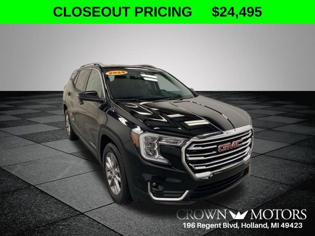 CARFAX One-Owner. Certified. Ebony Twilight Metallic 2024 GMC Terrain SLT AWD 9-Speed Automatic 1.5L DOHC **ONE OWNER**, **GM CERTIFIED**, GMC Certified Pre-Owned Certified, AWD, 2 USB Data Ports, 2 USB Data Ports w/SD Card Reader, 3.47 Final Drive Axle Ratio, 4-Wheel Disc Brakes, 6 Speakers, 6-Speaker Audio System Feature, 6-Way Power Front Passenger Seat, 8-Way Power Driver Seat Adjuster, ABS brakes, Adaptive Cruise Control, Air Conditioning, Alloy wheels, AM/FM radio: SiriusXM, Auto High-beam Headlights, Auto-dimming Rear-View mirror, Automatic temperature control, Bluetooth® For Phone, Brake assist, Bumpers: body-color, Cold Air Grille Shutter, Compass, Delay-off headlights, Driver & Front Passenger Heated Seats, Driver door bin, Driver vanity mirror, Dual front impact airbags, Dual front side impact airbags, Electronic Stability Control, Emergency communication system: OnStar and GMC connected services capable, Floor Liner Package (LPO), Four wheel independent suspension, Front & Rear All-Weather Floor Liners (LPO), Front anti-roll bar, Front Bucket Seats, Front Center Armrest, Front dual zone A/C, Front fog lights, Front Passenger 2-Way Power Lumbar, Front reading lights, Fully automatic headlights, Garage door transmitter, GMC Pro Safety Plus, Heated door mirrors, Heated front seats, Heated steering wheel, Illuminated entry, Infotainment Package II, Integrated Cargo Liner (LPO), Lane Change Alert w/Side Blind Zone Alert, Low tire pressure warning, Memory seat, Occupant sensing airbag, Outside temperature display, Overhead airbag, Overhead console, Panic alarm, Passenger door bin, Passenger vanity mirror, Perforated Leather-Appointed Seat Trim, Power door mirrors, Power Driver Lumbar Control, Power driver seat, Power Liftgate, Power passenger seat, Power steering, Power windows, Preferred Equipment Group 4SA, Premium 7-Speaker Bose Sound System w/Amplifier, Radio data system, Radio: GMC Infotainment Audio System w/8" Display, Radio: GMC Infotainment Audio System w/Navigation, Rear anti-roll bar, Rear Cross-Traffic Alert, Rear Park Assist, Rear seat center armrest, Rear window defroster, Rear window wiper, Remote keyless entry, Roof rack: rails only, Safety Alert Seat, Security system, SiriusXM, Speed control, Speed-sensing steering, Split folding rear seat, Spoiler, Steering wheel mounted audio controls, Tachometer, Telescoping steering wheel, Tilt steering wheel, Traction control, Trip computer, Turn signal indicator mirrors, Variably intermittent wipers, Wheels: 18" x 7" Silver Painted Aluminum, Wireless Apple CarPlay/Wireless Android Auto, AWD.