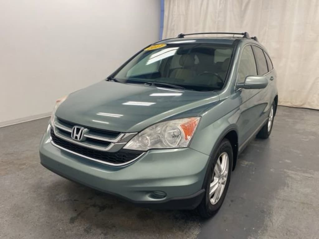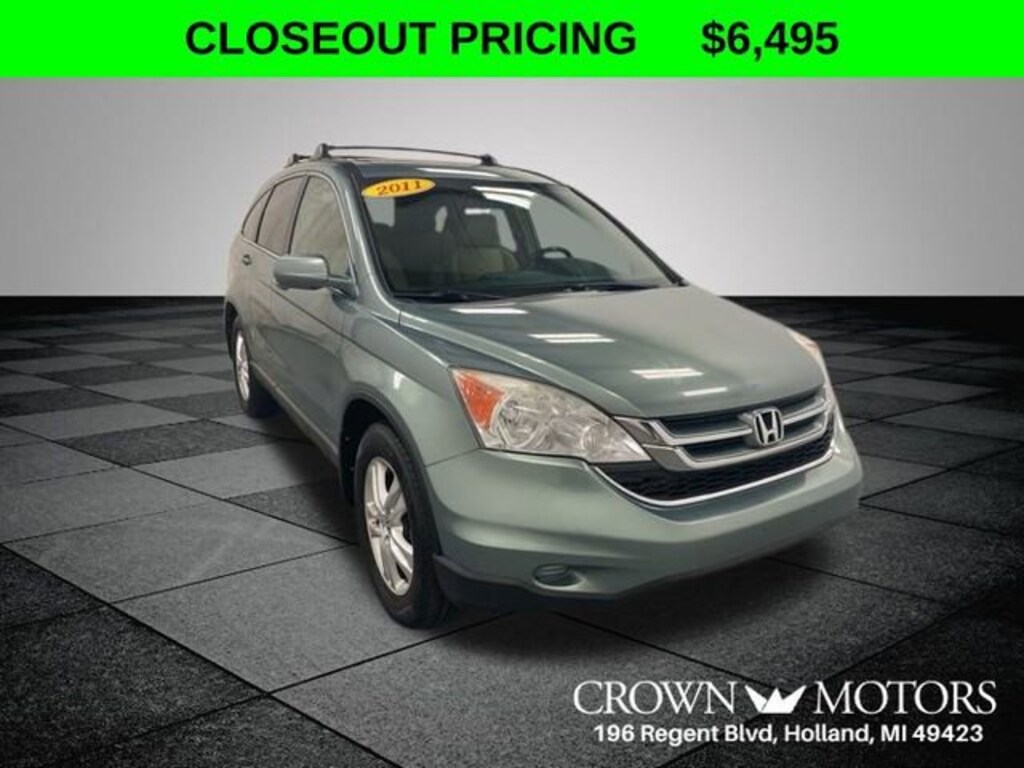 Opal Sage Metallic 2011 Honda CR-V EX-L AWD 5-Speed Automatic 2.4L I4 DOHC 16V i-VTEC **LOCAL TRADE IN**, AWD, 4-Wheel Disc Brakes, 4.50 Axle Ratio, 7 Speakers, ABS brakes, Air Conditioning, Alloy wheels, AM/FM radio: XM, Anti-whiplash front head restraints, Automatic temperature control, Brake assist, Bumpers: body-color, CD player, Delay-off headlights, Driver door bin, Driver vanity mirror, Driver's Seat Mounted Armrest, Dual front impact airbags, Dual front side impact airbags, Electronic Stability Control, Four wheel independent suspension, Front anti-roll bar, Front Bucket Seats, Front dual zone A/C, Front reading lights, Fully automatic headlights, Heated door mirrors, Heated front seats, Heated Reclining Front Bucket Seats, Illuminated entry, Leather Shift Knob, Leather-Trimmed Seats, Low tire pressure warning, Occupant sensing airbag, Outside temperature display, Overhead airbag, Overhead console, Panic alarm, Passenger door bin, Passenger seat mounted armrest, Passenger vanity mirror, Power door mirrors, Power driver seat, Power moonroof, Power steering, Power windows, Rear anti-roll bar, Rear seat center armrest, Rear window defroster, Rear window wiper, Remote keyless entry, Security system, Speed control, Speed-sensing steering, Speed-Sensitive Wipers, Split folding rear seat, Steering wheel mounted audio controls, Tachometer, Telescoping steering wheel, Tilt steering wheel, Traction control, Trip computer, Variably intermittent wipers, XM Radio, AWD.