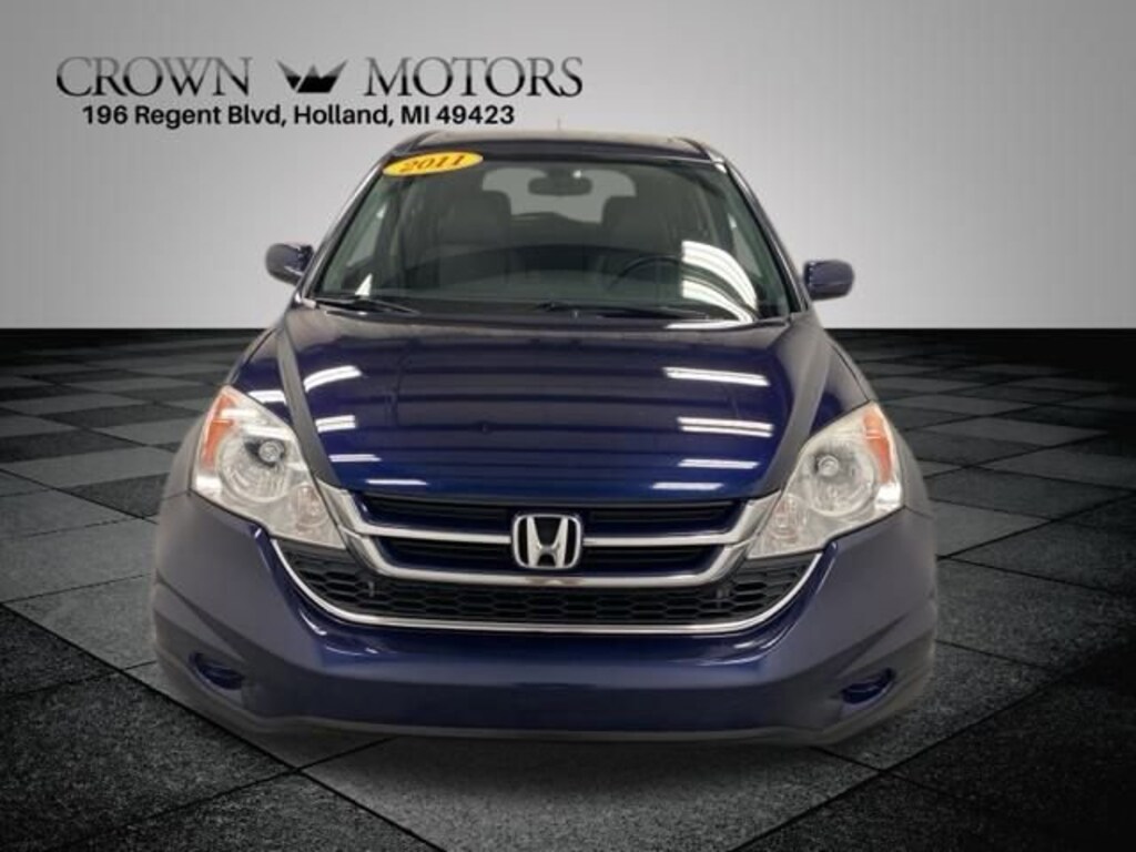 CARFAX One-Owner. Clean CARFAX. Royal Blue Pearl 2011 Honda CR-V EX-L AWD 5-Speed Automatic 2.4L I4 DOHC 16V i-VTEC **LEATHER**, **ACCIDENT FREE**, **LOCAL TRADE IN**, AWD, 4-Wheel Disc Brakes, 4.50 Axle Ratio, 7 Speakers, ABS brakes, Air Conditioning, Alloy wheels, AM/FM radio: XM, Anti-whiplash front head restraints, Automatic temperature control, Brake assist, Bumpers: body-color, CD player, Delay-off headlights, Driver door bin, Driver vanity mirror, Driver's Seat Mounted Armrest, Dual front impact airbags, Dual front side impact airbags, Electronic Stability Control, Four wheel independent suspension, Front anti-roll bar, Front Bucket Seats, Front dual zone A/C, Front reading lights, Fully automatic headlights, Heated door mirrors, Heated front seats, Heated Reclining Front Bucket Seats, Illuminated entry, Leather Shift Knob, Leather-Trimmed Seats, Low tire pressure warning, Occupant sensing airbag, Outside temperature display, Overhead airbag, Overhead console, Panic alarm, Passenger door bin, Passenger seat mounted armrest, Passenger vanity mirror, Power door mirrors, Power driver seat, Power moonroof, Power steering, Power windows, Rear anti-roll bar, Rear seat center armrest, Rear window defroster, Rear window wiper, Remote keyless entry, Security system, Speed control, Speed-sensing steering, Speed-Sensitive Wipers, Split folding rear seat, Steering wheel mounted audio controls, Tachometer, Telescoping steering wheel, Tilt steering wheel, Traction control, Trip computer, Variably intermittent wipers, XM Radio, AWD.
