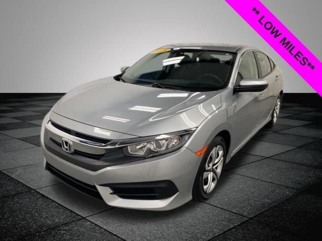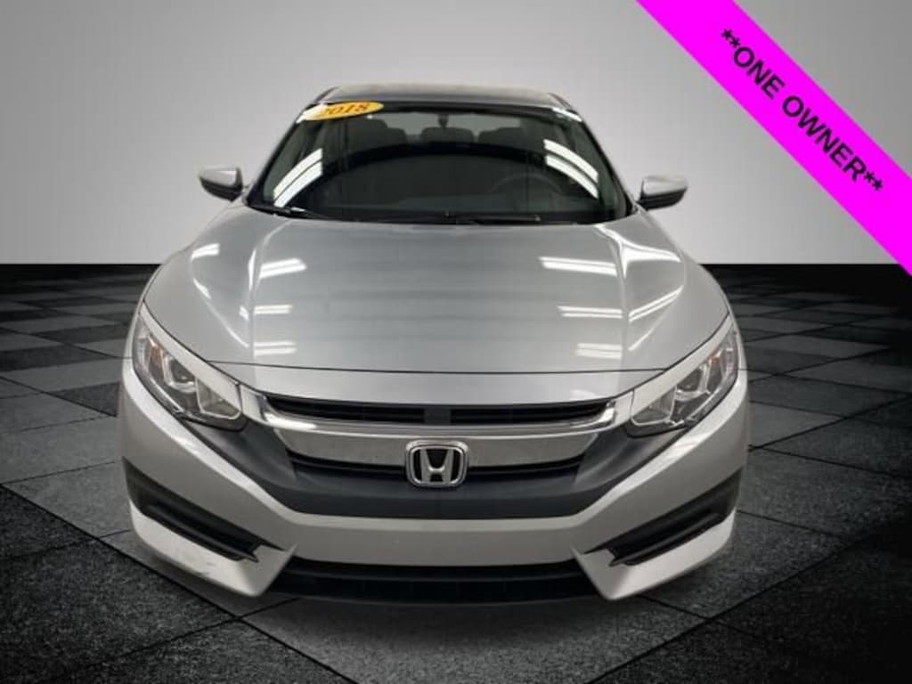 CARFAX One-Owner. Clean CARFAX. Lunar Silver Metallic 2018 Honda Civic LX FWD CVT 2.0L I4 DOHC 16V i-VTEC **ONE OWNER**, ** LOW MILES**, **LOCAL TRADE IN**, Black Cloth, 16" Wheels w/Full Covers, 4 Speakers, 4-Wheel Disc Brakes, ABS brakes, Air Conditioning, AM/FM radio, Automatic temperature control, Brake assist, Bumpers: body-color, Cloth Seat Trim, Compass, Delay-off headlights, Driver door bin, Driver vanity mirror, Dual front impact airbags, Dual front side impact airbags, Electronic Stability Control, Exterior Parking Camera Rear, Four wheel independent suspension, Front anti-roll bar, Front Bucket Seats, Front Center Armrest, Front reading lights, Fully automatic headlights, Illuminated entry, Low tire pressure warning, Occupant sensing airbag, Outside temperature display, Overhead airbag, Panic alarm, Passenger door bin, Passenger vanity mirror, Power door mirrors, Power steering, Power windows, Radio data system, Radio: 160-Watt AM/FM Audio System, Rear anti-roll bar, Rear window defroster, Reclining Front Bucket Seats, Remote keyless entry, Security system, Speed control, Speed-sensing steering, Steering wheel mounted audio controls, Tachometer, Telescoping steering wheel, Tilt steering wheel, Traction control, Black Cloth.