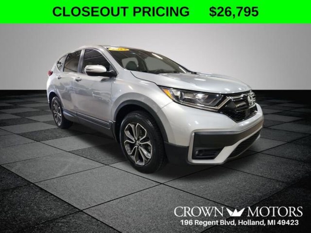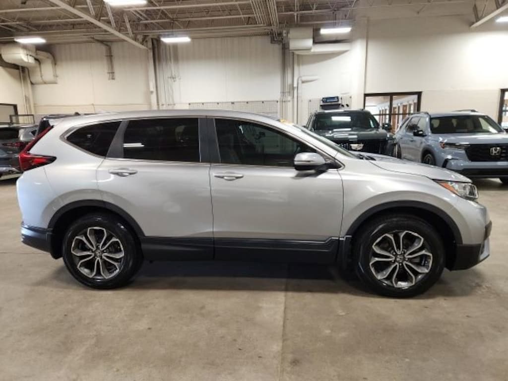 Certified. Lunar Silver Metallic 2022 Honda CR-V EX AWD CVT 1.5L I4 DOHC 16V **HONDA CERTIFIED**, HondaTrue Certified Certified, AWD, 18" Alloy Wheels, 4-Wheel Disc Brakes, 5.64 Axle Ratio, 6 Speakers, ABS brakes, Adaptive Cruise Control: Adaptive Cruise Control (ACC) with Low-Speed Follow, Air Conditioning, Alloy wheels, AM/FM radio: SiriusXM, Apple CarPlay/Android Auto, Auto High-beam Headlights, Automatic temperature control, Blind Spot Information (BSI) System warning, Brake assist, Bumpers: body-color, Cloth Seat Trim, Compass, Delay-off headlights, Driver door bin, Driver vanity mirror, Dual front impact airbags, Dual front side impact airbags, Electronic Stability Control, Exterior Parking Camera Rear, Forward collision: Collision Mitigation Braking System (CMBS) + FCW mitigation, Four wheel independent suspension, Front anti-roll bar, Front Bucket Seats, Front Center Armrest, Front dual zone A/C, Front fog lights, Front reading lights, Heated door mirrors, Heated Front Bucket Seats, Heated front seats, Illuminated entry, Low tire pressure warning, Occupant sensing airbag, Outside temperature display, Overhead airbag, Overhead console, Panic alarm, Passenger door bin, Passenger vanity mirror, Power door mirrors, Power driver seat, Power moonroof, Power steering, Power windows, Radio data system, Radio: 180-Watt AM/FM/HD/SiriusXM Audio System, Rear anti-roll bar, Rear seat center armrest, Rear window defroster, Rear window wiper, Remote keyless entry, Security system, Speed control, Speed-sensing steering, Speed-Sensitive Wipers, Split folding rear seat, Spoiler, Steering wheel mounted audio controls, Tachometer, Telescoping steering wheel, Tilt steering wheel, Traction control, Trip computer, Turn signal indicator mirrors, Variably intermittent wipers, AWD.