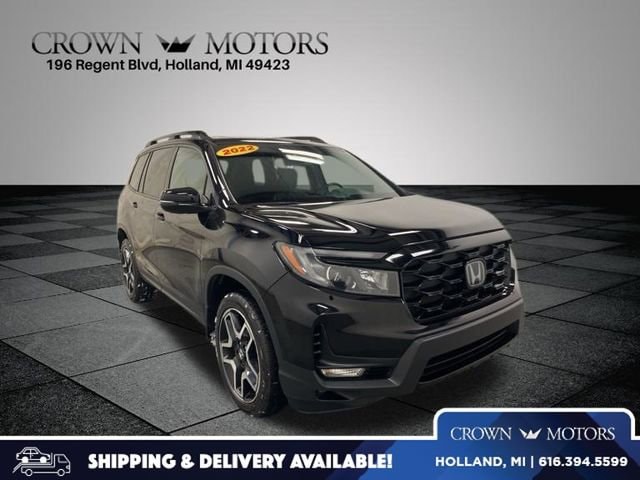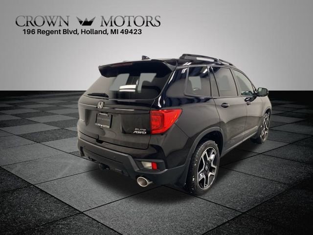 CARFAX One-Owner. Clean CARFAX. Crystal Black Pearl 2022 Honda Passport Elite AWD 9-Speed Automatic 3.5L V6 24V SOHC i-VTEC **ONE OWNER**, **LEATHER**, **ACCIDENT FREE**, AWD, 10 Speakers, 4-Wheel Disc Brakes, 4.334 Axle Ratio, A/V remote: CabinControl, ABS brakes, Air Conditioning, Alloy wheels, AM/FM radio: SiriusXM, Apple CarPlay/Android Auto, Auto High-beam Headlights, Auto-dimming door mirrors, Auto-dimming Rear-View mirror, Automatic temperature control, Blind Spot Information (BSI) System warning, Brake assist, Bumpers: body-color, Compass, Delay-off headlights, Driver door bin, Driver vanity mirror, Driver's Seat Mounted Armrest, Dual front impact airbags, Dual front side impact airbags, Electronic Stability Control, Emergency communication system: HondaLink, Exterior Parking Camera Rear, Forward collision: Collision Mitigation Braking System (CMBS) + FCW mitigation, Four wheel independent suspension, Front anti-roll bar, Front Bucket Seats, Front Center Armrest, Front dual zone A/C, Front fog lights, Front reading lights, Fully automatic headlights, Garage door transmitter: HomeLink, Heated & Ventilated Front Bucket Seats, Heated door mirrors, Heated front seats, Heated rear seats, Heated steering wheel, Illuminated entry, Lane departure: Lane Keeping Assist System (LKAS) active, Low tire pressure warning, Memory seat, Navigation system: Honda Satellite-Linked Navigation System, Occupant sensing airbag, Outside temperature display, Overhead airbag, Overhead console, Panic alarm, Passenger door bin, Passenger seat mounted armrest, Passenger vanity mirror, Perforated Leather-Trimmed Seats, Power door mirrors, Power driver seat, Power Liftgate, Power moonroof, Power passenger seat, Power steering, Power windows, Radio data system, Radio: 540-Watt Premium Audio System w/10 Speakers, Rain sensing wipers, Rear air conditioning, Rear anti-roll bar, Rear reading lights, Rear seat center armrest, Rear window defroster, Rear window wiper, Remote keyless entry, Roof rack: rails only, Security system, Speed control, Speed-sensing steering, Split folding rear seat, Spoiler, Steering wheel mounted audio controls, Tachometer, Telescoping steering wheel, Tilt steering wheel, Traction control, Trip computer, Turn signal indicator mirrors, Variably intermittent wipers, Ventilated front seats, Wheels: 20" Machined-Finish Alloy, AWD.