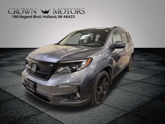 CARFAX One-Owner. Modern Steel Metallic 2022 Honda Pilot Special Edition AWD 9-Speed Automatic 3.5L V6 24V SOHC i-VTEC **ONE OWNER**, ** LOW MILES**, AWD, 3rd row seats: split-bench, 4-Wheel Disc Brakes, 4.33 Axle Ratio, 7 Speakers, A/V remote: CabinControl, ABS brakes, Air Conditioning, Alloy wheels, AM/FM radio: SiriusXM, Apple CarPlay/Android Auto, Auto High-beam Headlights, Auto-dimming Rear-View mirror, Automatic temperature control, Blind Spot Information (BSI) System warning, Brake assist, Bumpers: body-color, Delay-off headlights, Driver door bin, Driver vanity mirror, Dual front impact airbags, Dual front side impact airbags, Electronic Stability Control, Emergency communication system: HondaLink Assist, Exterior Parking Camera Rear, Forward collision: Collision Mitigation Braking System (CMBS) + FCW mitigation, Four wheel independent suspension, Front anti-roll bar, Front Bucket Seats, Front Center Armrest, Front dual zone A/C, Front fog lights, Front reading lights, Fully automatic headlights, Garage door transmitter: HomeLink, Heated door mirrors, Heated Front Bucket Seats, Heated front seats, Illuminated entry, Lane departure: Lane Keeping Assist System (LKAS) active, Leather Seat Trim, Low tire pressure warning, Memory seat, Occupant sensing airbag, Outside temperature display, Overhead airbag, Overhead console, Panic alarm, Passenger door bin, Passenger vanity mirror, Power door mirrors, Power driver seat, Power Liftgate, Power moonroof, Power passenger seat, Power steering, Power windows, Radio data system, Radio: 215-Watt Audio System, Rear air conditioning, Rear anti-roll bar, Rear reading lights, Rear seat center armrest, Rear window defroster, Rear window wiper, Reclining 3rd row seat, Remote keyless entry, Roof rack: rails only, Security system, Speed control, Speed-sensing steering, Speed-Sensitive Wipers, Split folding rear seat, Spoiler, Steering wheel mounted audio controls, Tachometer, Telescoping steering wheel, Tilt steering wheel, Traction control, Trip computer, Turn signal indicator mirrors, Variably intermittent wipers, Wheels: 20" Exclusive Gloss Black Alloy, AWD.
