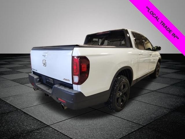 Platinum White Pearl 2022 Honda Ridgeline Black Edition AWD 9-Speed Automatic 3.5L V6 SOHC i-VTEC 24V **LEATHER**, **LOCAL TRADE IN**, AWD, Black Leather, 4-Wheel Disc Brakes, 4.33 Axle Ratio, 8 Speakers, ABS brakes, Air Conditioning, Alloy wheels, AM/FM radio: SiriusXM, Apple CarPlay/Android Auto, Auto High-beam Headlights, Auto-dimming Rear-View mirror, Automatic temperature control, Blind Spot Information (BSI) System warning, Bluetooth® Hands-Free Link, Brake assist, Bumpers: body-color, Compass, Delay-off headlights, Driver door bin, Driver vanity mirror, Driver's Seat Mounted Armrest, Dual front impact airbags, Dual front side impact airbags, Electronic Stability Control, Exterior Parking Camera Rear, Forward collision: Collision Mitigation Braking System (CMBS) + FCW mitigation, Four wheel independent suspension, Front anti-roll bar, Front Bucket Seats, Front dual zone A/C, Front fog lights, Front reading lights, Fully automatic headlights, Garage door transmitter: HomeLink, Heated door mirrors, Heated Front Bucket Seats, Heated front seats, Heated steering wheel, Honda Satellite-Linked Navigation System, Illuminated entry, Low tire pressure warning, Memory seat, Navigation system: Honda Satellite-Linked Navigation System, Occupant sensing airbag, Outside temperature display, Overhead airbag, Overhead console, Panic alarm, Passenger door bin, Passenger seat mounted armrest, Passenger vanity mirror, Perforated Leather Seat Trim, Power door mirrors, Power driver seat, Power moonroof, Power passenger seat, Power steering, Power windows, Radio data system, Radio: 540-Watt Premium Audio System w/8 Speakers, Rear air conditioning, Rear anti-roll bar, Rear reading lights, Rear seat center armrest, Rear step bumper, Rear window defroster, Remote keyless entry, Security system, SiriusXM, Speed control, Speed-sensing steering, Split folding rear seat, Steering wheel mounted audio controls, Tachometer, Telescoping steering wheel, Tilt steering wheel, Traction control, Trip computer, Turn signal indicator mirrors, Variably intermittent wipers, Wheels: 18" Exclusive Gloss Black Alloy, AWD, Black Leather.