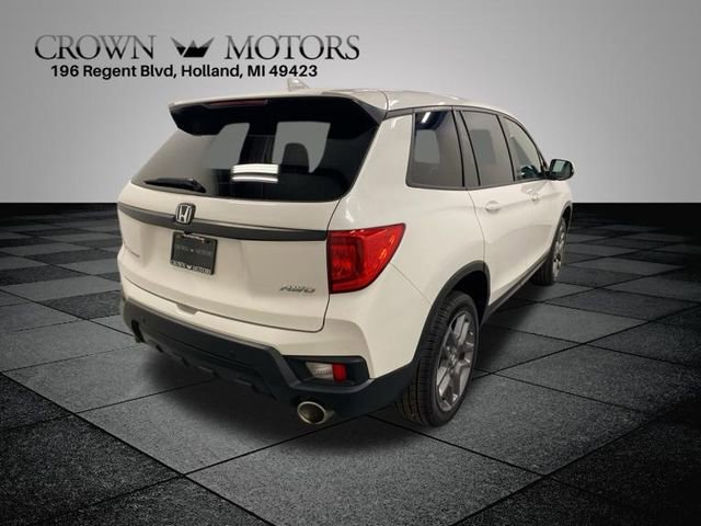 Certified. Platinum White Pearl 2023 Honda Passport EX-L AWD 9-Speed Automatic 3.5L V6 24V SOHC i-VTEC **HONDA CERTIFIED**, HondaTrue Certified Certified, 4-Wheel Disc Brakes, 4.334 Axle Ratio, 7 Speakers, A/V remote: CabinControl, ABS brakes, Air Conditioning, Alloy wheels, AM/FM radio: SiriusXM, Apple CarPlay/Android Auto, Auto High-beam Headlights, Auto-dimming Rear-View mirror, Automatic temperature control, Blind Spot Information (BSI) System warning, Brake assist, Bumpers: body-color, Delay-off headlights, Driver door bin, Driver vanity mirror, Driver's Seat Mounted Armrest, Dual front impact airbags, Dual front side impact airbags, Electronic Stability Control, Emergency communication system: HondaLink Assist, Exterior Parking Camera Rear, Four wheel independent suspension, Front anti-roll bar, Front Bucket Seats, Front Center Armrest, Front dual zone A/C, Front reading lights, Fully automatic headlights, Garage door transmitter: HomeLink, Heated door mirrors, Heated Front Bucket Seats, Heated front seats, Illuminated entry, Lane departure: Lane Keeping Assist System (LKAS) active, Leather-Trimmed Seats, Low tire pressure warning, Occupant sensing airbag, Outside temperature display, Overhead airbag, Overhead console, Panic alarm, Passenger door bin, Passenger seat mounted armrest, Passenger vanity mirror, Power door mirrors, Power driver seat, Power Liftgate, Power moonroof, Power passenger seat, Power steering, Power windows, Radio data system, Radio: 215-Watt Audio System w/7 Speakers, Rear air conditioning, Rear anti-roll bar, Rear reading lights, Rear seat center armrest, Rear window defroster, Rear window wiper, Remote keyless entry, Security system, Speed control, Speed-sensing steering, Split folding rear seat, Spoiler, Steering wheel mounted audio controls, Tachometer, Telescoping steering wheel, Tilt steering wheel, Traction control, Trip computer, Turn signal indicator mirrors, Variably intermittent wipers, Wheels: 20" Pewter Gray Alloy.