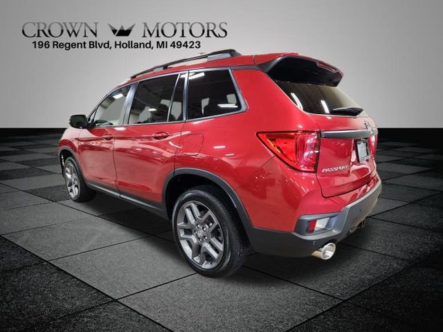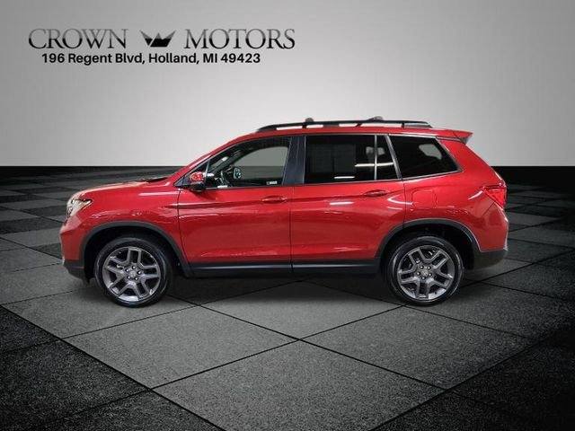 CARFAX One-Owner. Clean CARFAX. Certified. Radiant Red Metallic II 2023 Honda Passport EX-L AWD 9-Speed Automatic 3.5L V6 24V SOHC i-VTEC **ONE OWNER**, ** LOW MILES**, **HONDA CERTIFIED**, **ACCIDENT FREE**, HondaTrue Certified Certified, AWD, 4-Wheel Disc Brakes, 4.334 Axle Ratio, 7 Speakers, A/V remote: CabinControl, ABS brakes, Air Conditioning, Alloy wheels, AM/FM radio: SiriusXM, Apple CarPlay/Android Auto, Auto High-beam Headlights, Auto-dimming Rear-View mirror, Automatic temperature control, Blind Spot Information (BSI) System warning, Brake assist, Bumpers: body-color, Delay-off headlights, Driver door bin, Driver vanity mirror, Driver's Seat Mounted Armrest, Dual front impact airbags, Dual front side impact airbags, Electronic Stability Control, Emergency communication system: HondaLink Assist, Exterior Parking Camera Rear, Four wheel independent suspension, Front anti-roll bar, Front Bucket Seats, Front Center Armrest, Front dual zone A/C, Front reading lights, Fully automatic headlights, Garage door transmitter: HomeLink, Heated door mirrors, Heated Front Bucket Seats, Heated front seats, Illuminated entry, Lane departure: Lane Keeping Assist System (LKAS) active, Leather-Trimmed Seats, Low tire pressure warning, Occupant sensing airbag, Outside temperature display, Overhead airbag, Overhead console, Panic alarm, Passenger door bin, Passenger seat mounted armrest, Passenger vanity mirror, Power door mirrors, Power driver seat, Power Liftgate, Power moonroof, Power passenger seat, Power steering, Power windows, Radio data system, Radio: 215-Watt Audio System w/7 Speakers, Rear air conditioning, Rear anti-roll bar, Rear reading lights, Rear seat center armrest, Rear window defroster, Rear window wiper, Remote keyless entry, Security system, Speed control, Speed-sensing steering, Split folding rear seat, Spoiler, Steering wheel mounted audio controls, Tachometer, Telescoping steering wheel, Tilt steering wheel, Traction control, Trip computer, Turn signal indicator mirrors, Variably intermittent wipers, Wheels: 20" Pewter Gray Alloy, AWD.