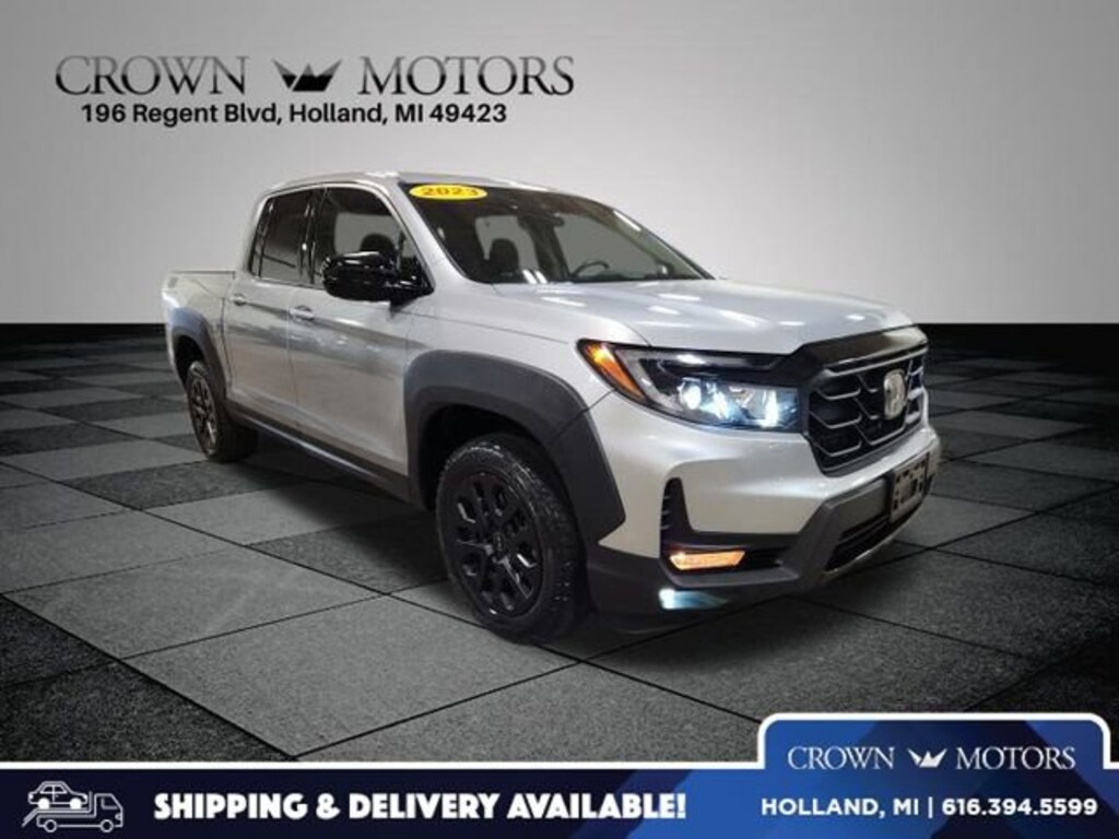CARFAX One-Owner. Clean CARFAX. Certified. Lunar Silver Metallic 2023 Honda Ridgeline Sport AWD 9-Speed Automatic 3.5L V6 SOHC i-VTEC 24V **ONE OWNER**, ** LOW MILES**, **HONDA CERTIFIED**, **ACCIDENT FREE**, HondaTrue Certified Certified, Black Cloth, 4-Wheel Disc Brakes, 4.33 Axle Ratio, 7 Speakers, ABS brakes, Air Conditioning, Alloy wheels, AM/FM radio, Apple CarPlay/Android Auto, Automatic temperature control, Bluetooth® Hands-Free Link, Brake assist, Bumpers: body-color, Cloth Seat Trim, Delay-off headlights, Driver door bin, Driver vanity mirror, Driver's Seat Mounted Armrest, Dual front impact airbags, Dual front side impact airbags, Electronic Stability Control, Exterior Parking Camera Rear, Four wheel independent suspension, Front anti-roll bar, Front Bucket Seats, Front dual zone A/C, Front fog lights, Front reading lights, Fully automatic headlights, Garage door transmitter: HomeLink, Illuminated entry, Low tire pressure warning, Occupant sensing airbag, Outside temperature display, Overhead airbag, Overhead console, Panic alarm, Passenger door bin, Passenger seat mounted armrest, Passenger vanity mirror, Power door mirrors, Power steering, Power windows, Radio data system, Radio: 215-Watt Audio System w/7 Speakers, Rear air conditioning, Rear anti-roll bar, Rear reading lights, Rear seat center armrest, Rear step bumper, Rear window defroster, Remote keyless entry, Security system, Speed control, Speed-sensing steering, Split folding rear seat, Steering wheel mounted audio controls, Tachometer, Telescoping steering wheel, Tilt steering wheel, Traction control, Trip computer, Variably intermittent wipers, Wheels: 18" Shark Gray Alloy, Black Cloth.