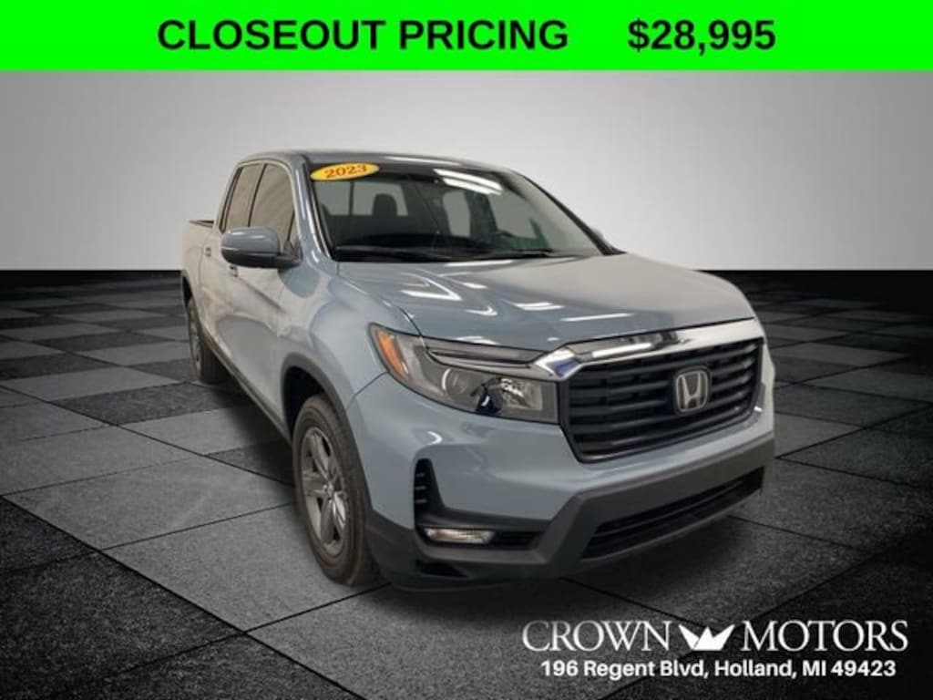 CARFAX One-Owner. Clean CARFAX. Sonic Gray Pearl 2023 Honda Ridgeline RTL AWD 9-Speed Automatic 3.5L V6 SOHC i-VTEC 24V **ONE OWNER**, **ACCIDENT FREE**, Black Leather, 4-Wheel Disc Brakes, 4.33 Axle Ratio, 7 Speakers, ABS brakes, Air Conditioning, Alloy wheels, AM/FM radio: SiriusXM, Apple CarPlay/Android Auto, Auto-dimming Rear-View mirror, Automatic temperature control, Blind Spot Information (BSI) System warning, Bluetooth® Hands-Free Link, Brake assist, Bumpers: body-color, Delay-off headlights, Driver door bin, Driver vanity mirror, Driver's Seat Mounted Armrest, Dual front impact airbags, Dual front side impact airbags, Electronic Stability Control, Exterior Parking Camera Rear, Four wheel independent suspension, Front anti-roll bar, Front Bucket Seats, Front dual zone A/C, Front fog lights, Front reading lights, Fully automatic headlights, Garage door transmitter: HomeLink, Heated door mirrors, Heated Front Bucket Seats, Heated front seats, Illuminated entry, Leather Seat Trim, Low tire pressure warning, Memory seat, Occupant sensing airbag, Outside temperature display, Overhead airbag, Overhead console, Panic alarm, Passenger door bin, Passenger seat mounted armrest, Passenger vanity mirror, Power door mirrors, Power driver seat, Power moonroof, Power passenger seat, Power steering, Power windows, Radio data system, Radio: 215-Watt Audio System w/7 Speakers, Rear air conditioning, Rear anti-roll bar, Rear reading lights, Rear seat center armrest, Rear step bumper, Rear window defroster, Remote keyless entry, Security system, SiriusXM, Speed control, Speed-sensing steering, Split folding rear seat, Steering wheel mounted audio controls, Tachometer, Telescoping steering wheel, Tilt steering wheel, Traction control, Trip computer, Turn signal indicator mirrors, Variably intermittent wipers, Wheels: 18" Exclusive Pewter Gray Alloy, Black Leather.