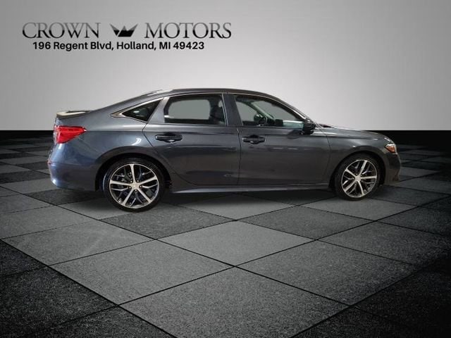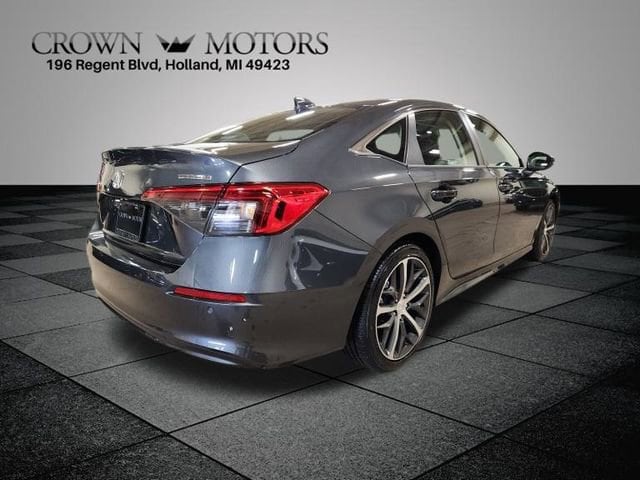 CARFAX One-Owner. Certified. Gray 2024 Honda Civic Touring FWD CVT 1.5L I4 DOHC 16V **ONE OWNER**, ** LOW MILES**, **HONDA CERTIFIED**, **LOCAL TRADE IN**, HondaTrue Certified Certified, Leather, 12 Speakers, 4-Wheel Disc Brakes, ABS brakes, Adaptive Cruise Control: Adaptive Cruise Control (ACC) with Low-Speed Follow, Air Conditioning, Alloy wheels, AM/FM radio: SiriusXM, Apple CarPlay/Android Auto, Auto High-beam Headlights, Auto-dimming Rear-View mirror, Automatic temperature control, Blind Spot Information (BSI) System warning, Bose Premium Audio System, Brake assist, Bumpers: body-color, Compass, Delay-off headlights, Driver door bin, Driver vanity mirror, Dual front impact airbags, Dual front side impact airbags, Electronic Stability Control, Emergency communication system: HondaLink, Exterior Parking Camera Rear, Four wheel independent suspension, Front anti-roll bar, Front Bucket Seats, Front Center Armrest, Front dual zone A/C, Front fog lights, Front reading lights, Fully automatic headlights, Garage door transmitter: HomeLink, Heated door mirrors, Heated Front Bucket Seats, Heated front seats, Illuminated entry, Knee airbag, Leather Shift Knob, Leather steering wheel, Leather-Trimmed Seating Surfaces, Low tire pressure warning, Navigation system: Honda Satellite-Linked Navigation System, Occupant sensing airbag, Outside temperature display, Overhead airbag, Overhead console, Panic alarm, Passenger door bin, Passenger vanity mirror, Power door mirrors, Power driver seat, Power moonroof, Power passenger seat, Power steering, Power windows, Radio data system, Rain sensing wipers, Rear anti-roll bar, Rear seat center armrest, Rear side impact airbag, Rear window defroster, Remote keyless entry, Security system, Speed control, Speed-sensing steering, Split folding rear seat, Steering wheel mounted audio controls, Tachometer, Telescoping steering wheel, Tilt steering wheel, Traction control, Trip computer, Turn signal indicator mirrors, Variably intermittent wipers, Wheels: 18" Alloy w/Gloss Shark Gray Inserts, Leather.