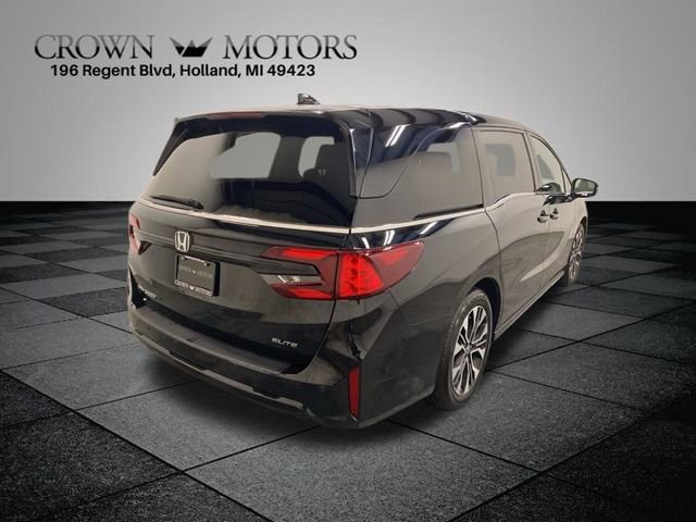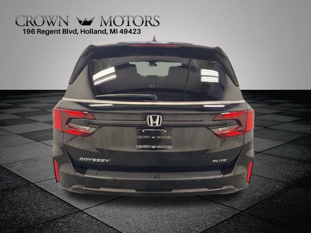 CARFAX One-Owner. Clean CARFAX. Certified. Crystal Black Pearl 2025 Honda Odyssey Elite FWD 10-Speed Automatic 3.5L V6 SOHC i-VTEC 24V **ONE OWNER**, ** LOW MILES**, **HONDA CERTIFIED**, **ACCIDENT FREE**, HondaTrue Certified Certified, 11 Speakers, 3rd row seats: split-bench, 4-Wheel Disc Brakes, ABS brakes, Adaptive Cruise Control: Adaptive Cruise Control (ACC) with Low-Speed Follow, Air Conditioning, Alloy wheels, AM/FM radio: SiriusXM, Anti-whiplash front head restraints, Apple CarPlay/Android Auto, Auto High-beam Headlights, Auto-dimming door mirrors, Auto-dimming Rear-View mirror, Automatic temperature control, Blind Spot Information (BSI) System warning, Brake assist, Bumpers: body-color, Compass, Delay-off headlights, Driver door bin, Driver vanity mirror, Driver's Seat Mounted Armrest, Dual front impact airbags, Dual front side impact airbags, Electronic Stability Control, Emergency communication system: HondaLink, Exterior Parking Camera Rear, Four wheel independent suspension, Front anti-roll bar, Front Bucket Seats, Front dual zone A/C, Front fog lights, Front reading lights, Fully automatic headlights, Garage door transmitter: HomeLink, Heated & Ventilated Front Bucket Seats, Heated door mirrors, Heated front seats, Heated steering wheel, Illuminated entry, Knee airbag, Lane departure: Lane Keeping Assist System (LKAS) active, Leather steering wheel, Low tire pressure warning, Memory seat, Navigation system: Honda Satellite-Linked Navigation System, Occupant sensing airbag, Outside temperature display, Overhead airbag, Overhead console, Panic alarm, Passenger door bin, Passenger seat mounted armrest, Passenger vanity mirror, Perforated Leather Trimmed Seats w/Piping, Power door mirrors, Power driver seat, Power Liftgate, Power moonroof, Power passenger seat, Power steering, Power windows, Radio data system, Radio: 500-Watt AM/FM/HD Premium Audio System, Rain sensing wipers, Rear air conditioning, Rear anti-roll bar, Rear audio controls, Rear reading lights, Rear seat center armrest, Rear window defroster, Rear window wiper, Reclining 3rd row seat, Remote keyless entry, Security system, Speed control, Speed-sensing steering, Speed-Sensitive Wipers, Split folding rear seat, Spoiler, Steering wheel mounted audio controls, Tachometer, Telescoping steering wheel, Tilt steering wheel, Traction control, Trip computer, Turn signal indicator mirrors, Variably intermittent wipers, Ventilated front seats, Wheels: 19" Machine-Finished Alloy.