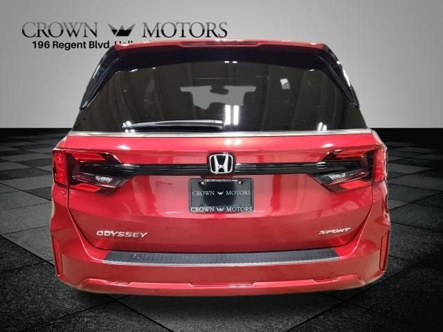 CARFAX One-Owner. Clean CARFAX. Certified. Radiant Red Metallic II 2025 Honda Odyssey Sport-L FWD 10-Speed Automatic 3.5L V6 SOHC i-VTEC 24V **ONE OWNER**, ** LOW MILES**, **HONDA CERTIFIED**, **ACCIDENT FREE**, HondaTrue Certified Certified, 3rd row seats: split-bench, 4-Wheel Disc Brakes, 7 Speakers, ABS brakes, Adaptive Cruise Control: Adaptive Cruise Control (ACC) with Low-Speed Follow, Air Conditioning, Alloy wheels, AM/FM radio: SiriusXM, Anti-whiplash front head restraints, Apple CarPlay/Android Auto, Auto High-beam Headlights, Auto-dimming Rear-View mirror, Automatic temperature control, Blind Spot Information (BSI) System warning, Brake assist, Bumpers: body-color, Delay-off headlights, Driver door bin, Driver vanity mirror, Driver's Seat Mounted Armrest, Dual front impact airbags, Dual front side impact airbags, Electronic Stability Control, Exterior Parking Camera Rear, Four wheel independent suspension, Front anti-roll bar, Front Bucket Seats, Front dual zone A/C, Front fog lights, Front reading lights, Fully automatic headlights, Garage door transmitter: HomeLink, Heated door mirrors, Heated Front Bucket Seats, Heated front seats, Illuminated entry, Knee airbag, Lane departure: Lane Keeping Assist System (LKAS) active, Leather steering wheel, Leather Trimmed Seats, Low tire pressure warning, Memory seat, Occupant sensing airbag, Outside temperature display, Overhead airbag, Overhead console, Panic alarm, Passenger door bin, Passenger seat mounted armrest, Passenger vanity mirror, Power door mirrors, Power driver seat, Power Liftgate, Power moonroof, Power passenger seat, Power steering, Power windows, Radio data system, Radio: 160-Watt AM/FM/HD/SiriusXM Audio System, Rear air conditioning, Rear anti-roll bar, Rear reading lights, Rear seat center armrest, Rear window defroster, Rear window wiper, Reclining 3rd row seat, Remote keyless entry, Security system, Speed control, Speed-sensing steering, Speed-Sensitive Wipers, Split folding rear seat, Spoiler, Steering wheel mounted audio controls, Tachometer, Telescoping steering wheel, Tilt steering wheel, Traction control, Trip computer, Turn signal indicator mirrors, Variably intermittent wipers, Wheels: 19" Gloss Black Alloy.