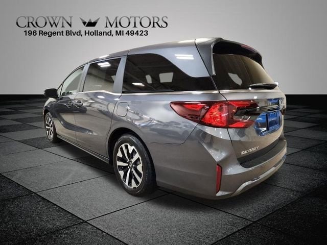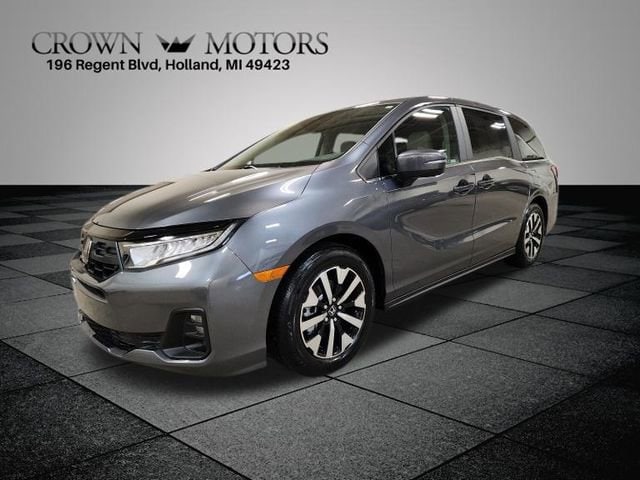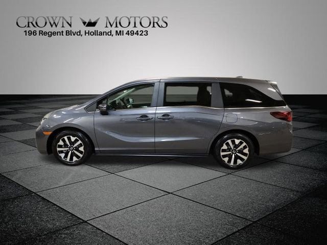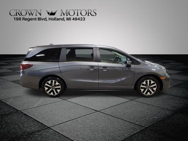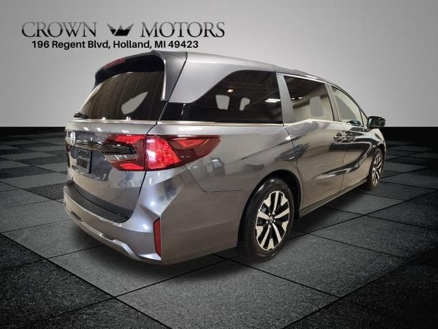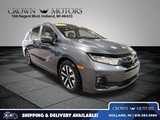 CARFAX One-Owner. Certified. Modern Steel Metallic 2025 Honda Odyssey EX-L FWD 10-Speed Automatic 3.5L V6 SOHC i-VTEC 24V **ONE OWNER**, **HONDA CERTIFIED**, HondaTrue Certified Certified, 18" Machine-Finished Alloy Wheels, 3rd row seats: split-bench, 4-Wheel Disc Brakes, 7 Speakers, ABS brakes, Adaptive Cruise Control: Adaptive Cruise Control (ACC) with Low-Speed Follow, Air Conditioning, Alloy wheels, AM/FM radio: SiriusXM, Anti-whiplash front head restraints, Apple CarPlay/Android Auto, Auto High-beam Headlights, Auto-dimming Rear-View mirror, Automatic temperature control, Blind Spot Information (BSI) System warning, Brake assist, Bumpers: body-color, Delay-off headlights, Driver door bin, Driver vanity mirror, Driver's Seat Mounted Armrest, Dual front impact airbags, Dual front side impact airbags, Electronic Stability Control, Exterior Parking Camera Rear, Four wheel independent suspension, Front anti-roll bar, Front Bucket Seats, Front dual zone A/C, Front fog lights, Front reading lights, Fully automatic headlights, Garage door transmitter: HomeLink, Heated door mirrors, Heated Front Bucket Seats, Heated front seats, Illuminated entry, Knee airbag, Lane departure: Lane Keeping Assist System (LKAS) active, Leather steering wheel, Leather Trimmed Seats, Low tire pressure warning, Memory seat, Occupant sensing airbag, Outside temperature display, Overhead airbag, Overhead console, Panic alarm, Passenger door bin, Passenger seat mounted armrest, Passenger vanity mirror, Power door mirrors, Power driver seat, Power Liftgate, Power moonroof, Power passenger seat, Power steering, Power windows, Radio data system, Radio: 160-Watt AM/FM/HD/SiriusXM Audio System, Rear air conditioning, Rear anti-roll bar, Rear reading lights, Rear seat center armrest, Rear window defroster, Rear window wiper, Reclining 3rd row seat, Remote keyless entry, Security system, Speed control, Speed-sensing steering, Speed-Sensitive Wipers, Split folding rear seat, Spoiler, Steering wheel mounted audio controls, Tachometer, Telescoping steering wheel, Tilt steering wheel, Traction control, Trip computer, Turn signal indicator mirrors, Variably intermittent wipers.