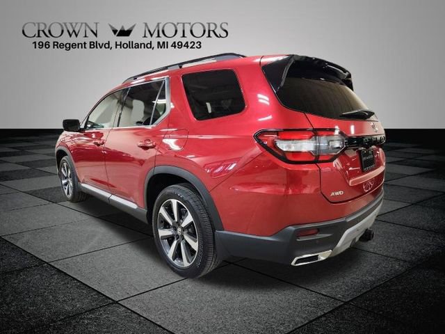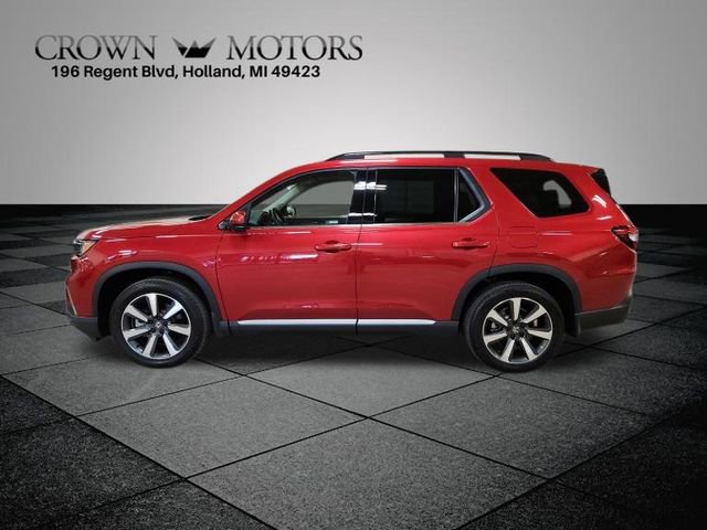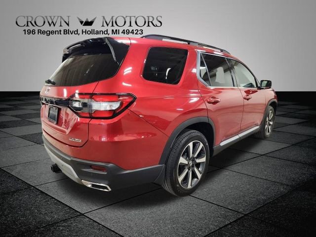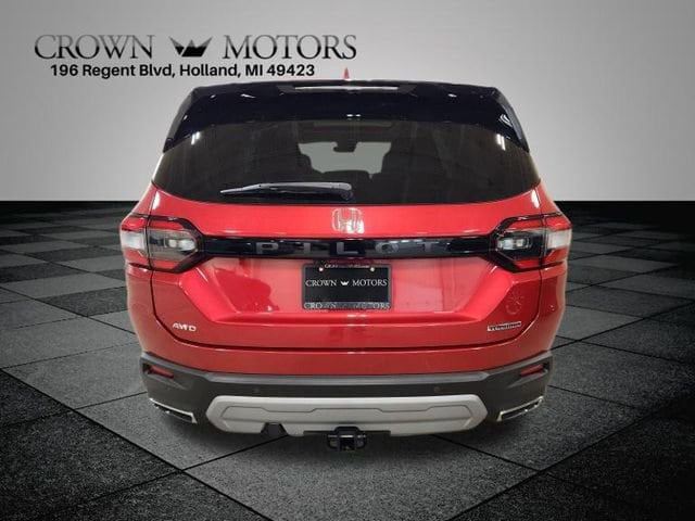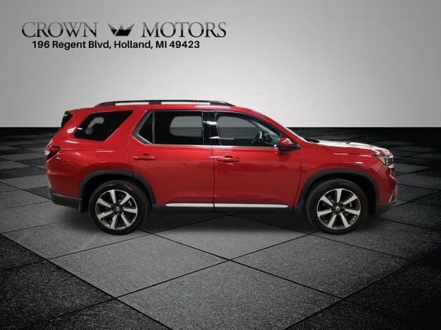 CARFAX One-Owner. Clean CARFAX. Certified. Radiant Red Metallic II 2025 Honda Pilot Touring AWD 10-Speed Automatic 3.5L V6 DOHC 24V **ONE OWNER**, ** LOW MILES**, **HONDA CERTIFIED**, **ACCIDENT FREE**, HondaTrue Certified Certified, AWD, 12 Speakers, 3rd row seats: split-bench, 4-Wheel Disc Brakes, 4.167 Axle Ratio, ABS brakes, Adaptive Cruise Control: Adaptive Cruise Control (ACC) with Low-Speed Follow, Air Conditioning, Alloy wheels, AM/FM radio: SiriusXM, Apple CarPlay/Android Auto, Auto High-beam Headlights, Auto-dimming Rear-View mirror, Automatic temperature control, Blind Spot Information (BSI) System warning, Bose Premium Sound System, Brake assist, Bumpers: body-color, Compass, Delay-off headlights, Driver door bin, Driver vanity mirror, Dual front impact airbags, Dual front side impact airbags, Electronic Stability Control, Emergency communication system: HondaLink, Exterior Parking Camera Rear, Four wheel independent suspension, Front anti-roll bar, Front Bucket Seats, Front Center Armrest, Front dual zone A/C, Front fog lights, Front reading lights, Fully automatic headlights, Garage door transmitter: HomeLink, Heated door mirrors, Heated Front Bucket Seats, Heated front seats, Honda Satellite-Linked Navigation System, HondaLink Subscription Services, Illuminated entry, Knee airbag, Lane departure: Lane Keeping Assist System (LKAS) active, Leather Seat Trim, Low tire pressure warning, Memory seat, Navigation system: Honda Satellite-Linked Navigation System, Occupant sensing airbag, Outside temperature display, Overhead airbag, Overhead console, Panic alarm, Passenger door bin, Passenger vanity mirror, Power door mirrors, Power driver seat, Power Liftgate, Power moonroof, Power passenger seat, Power steering, Power windows, Radio data system, Rear air conditioning, Rear anti-roll bar, Rear reading lights, Rear seat center armrest, Rear window defroster, Rear window wiper, Reclining 3rd row seat, Remote keyless entry, Security system, SiriusXM, Speed control, Speed-sensing steering, Speed-Sensitive Wipers, Split folding rear seat, Spoiler, Steering wheel mounted audio controls, Tachometer, Telescoping steering wheel, Tilt steering wheel, Traction control, Trip computer, Turn signal indicator mirrors, Variably intermittent wipers, Wheels: 20" Shark Gray Machine Face with Black Lug Nuts, AWD.