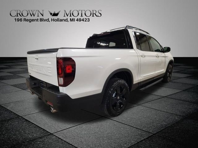 CARFAX One-Owner. Clean CARFAX. Certified. Platinum White Pearl 2025 Honda Ridgeline Black Edition AWD 9-Speed Automatic 3.5L V6 SOHC i-VTEC 24V **ONE OWNER**, ** LOW MILES**, **HONDA CERTIFIED**, **ACCIDENT FREE**, HondaTrue Certified Certified, Black Leather, 4-Wheel Disc Brakes, 4.33 Axle Ratio, 8 Speakers, ABS brakes, Air Conditioning, Alloy wheels, AM/FM radio: SiriusXM, Auto High-beam Headlights, Auto-dimming Rear-View mirror, Automatic temperature control, Blind Spot Information (BSI) System warning, Bluetooth® Hands-Free Link, Brake assist, Bumpers: body-color, Compass, Delay-off headlights, Driver door bin, Driver vanity mirror, Driver's Seat Mounted Armrest, Dual front impact airbags, Dual front side impact airbags, Electronic Stability Control, Emergency communication system: HondaLink Assist, Exterior Parking Camera Rear, Four wheel independent suspension, Front anti-roll bar, Front Bucket Seats, Front dual zone A/C, Front fog lights, Front reading lights, Fully automatic headlights, Garage door transmitter: HomeLink, Heated & Ventilated Front Bucket Seats, Heated door mirrors, Heated front seats, Heated rear seats, Heated steering wheel, Honda Satellite-Linked Navigation System, Illuminated entry, Leather Seat Trim, Leather steering wheel, Low tire pressure warning, Memory seat, Navigation system: Honda Satellite-Linked Navigation System, Occupant sensing airbag, Outside temperature display, Overhead airbag, Overhead console, Panic alarm, Passenger door bin, Passenger seat mounted armrest, Passenger vanity mirror, Power door mirrors, Power driver seat, Power moonroof, Power passenger seat, Power steering, Power windows, Radio data system, Radio: 540-Watt Premium Audio System w/8 Speakers, Rear air conditioning, Rear anti-roll bar, Rear reading lights, Rear seat center armrest, Rear step bumper, Rear window defroster, Remote keyless entry, Security system, SiriusXM, Speed control, Speed-sensing steering, Split folding rear seat, Steering wheel mounted audio controls, Tachometer, Telescoping steering wheel, Tilt steering wheel, Traction control, Trip computer, Turn signal indicator mirrors, Variably intermittent wipers, Ventilated front seats, Wheels: 18" Berlina Black Alloy, Black Leather.