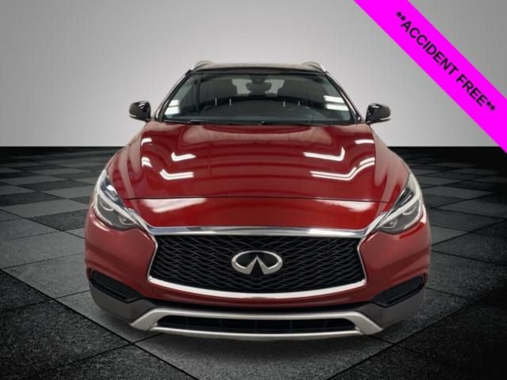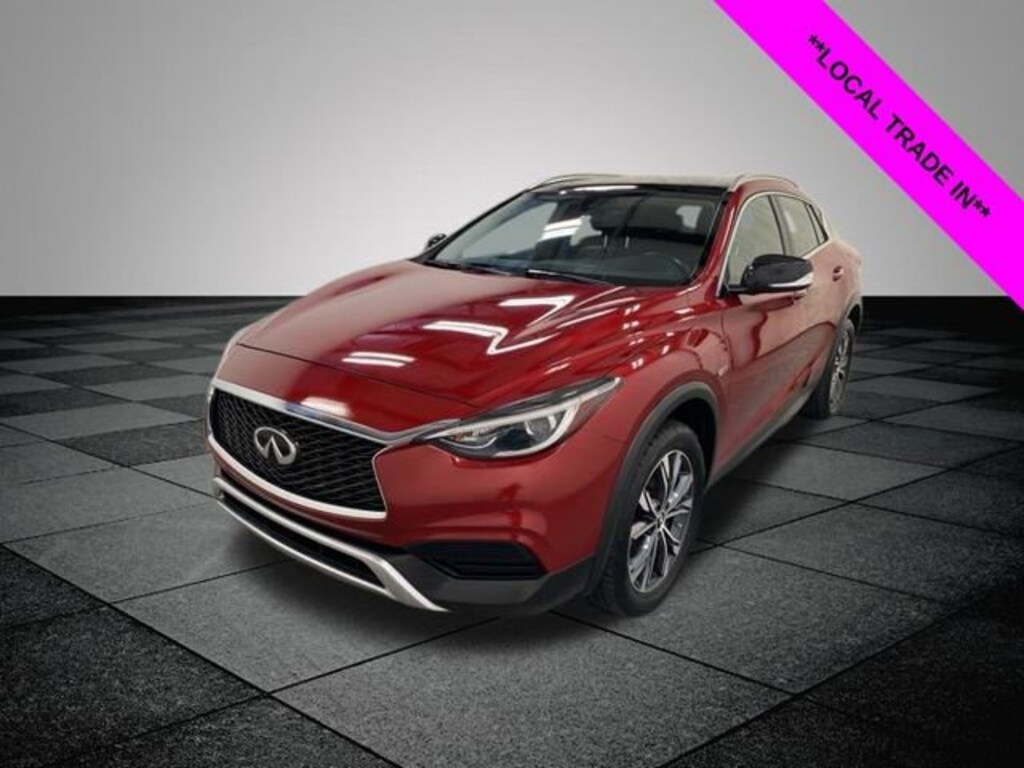 Clean CARFAX. Magnetic Red 2019 INFINITI QX30 LUXE AWD 7-Speed Automatic with Overdrive 2.0L I4 DOHC Turbocharged **ACCIDENT FREE**, **LOCAL TRADE IN**, 2.654 Axle Ratio, 4-Wheel Disc Brakes, 6 Speakers, ABS brakes, Air Conditioning, Alloy wheels, AM/FM radio: SiriusXM, Auto-dimming door mirrors, Auto-dimming Rear-View mirror, Automatic temperature control, Block heater, Brake assist, Bumpers: body-color, CD player, Delay-off headlights, Driver door bin, Driver vanity mirror, Dual front impact airbags, Dual front side impact airbags, Electronic Stability Control, Four wheel independent suspension, Front anti-roll bar, Front Bucket Seats, Front Center Armrest, Front dual zone A/C, Front reading lights, Fully automatic headlights, Heated door mirrors, Heated Front Bucket Seats, Heated front seats, Illuminated entry, Knee airbag, Leather Shift Knob, Leather steering wheel, Leatherette & Textile Seat Trim, Literature Kit, Low tire pressure warning, Memory seat, Occupant sensing airbag, Outside temperature display, Overhead airbag, Overhead console, Panic alarm, Passenger door bin, Passenger vanity mirror, Power door mirrors, Power driver seat, Power passenger seat, Power steering, Power windows, Radio data system, Radio: AM/FM/CD/HD/SAT Audio System, Rear anti-roll bar, Rear fog lights, Rear reading lights, Rear seat center armrest, Rear window defroster, Rear window wiper, Remote keyless entry, Roof rack: rails only, Security system, Speed control, Speed-sensing steering, Split folding rear seat, Spoiler, Standard Carpeted Floor Mats, Steering wheel mounted audio controls, Tachometer, Telescoping steering wheel, Tilt steering wheel, Traction control, Trip computer, Turn signal indicator mirrors, Variably intermittent wipers, Wheels: 18" Machine Finished Aluminum-Alloy.