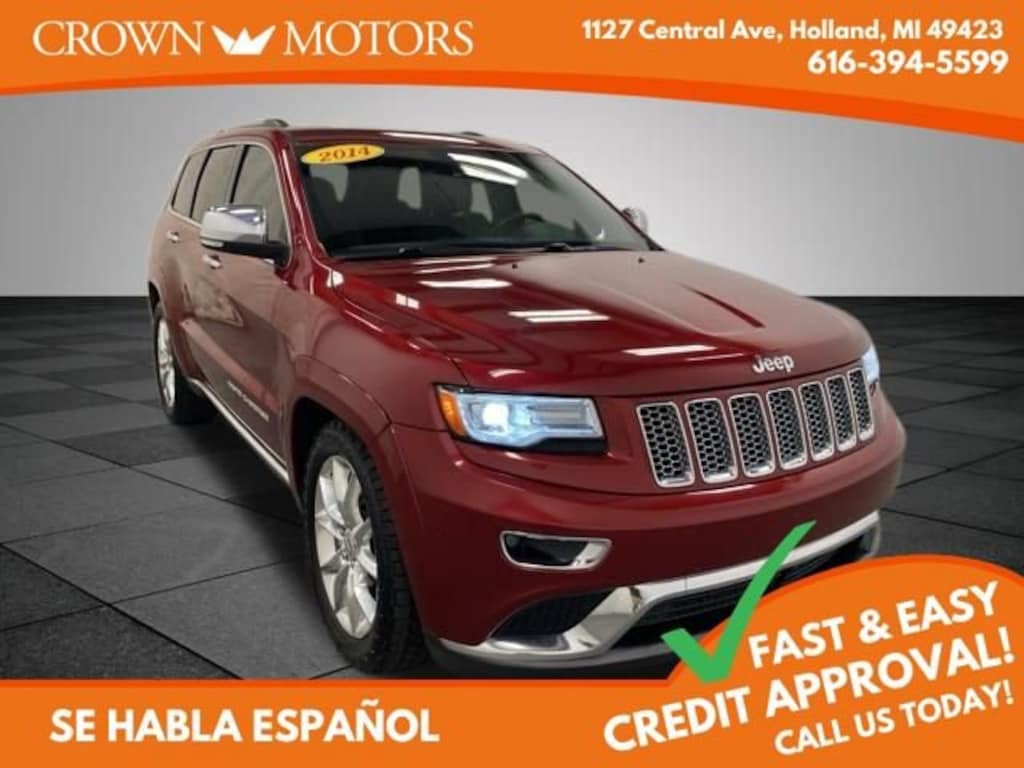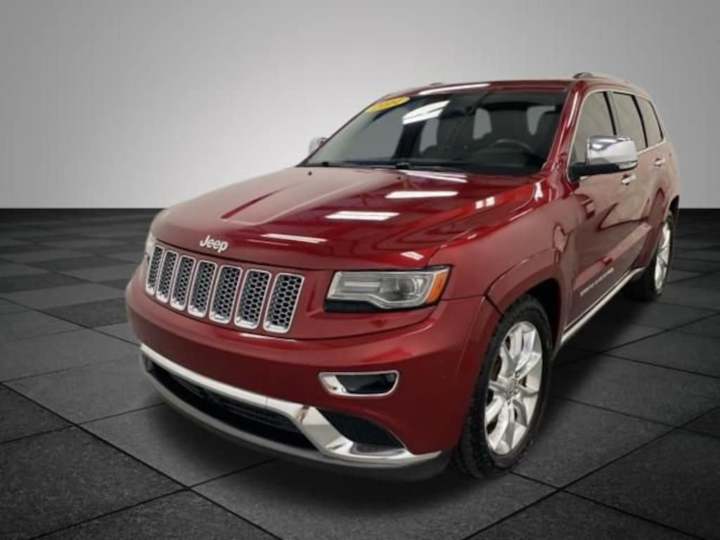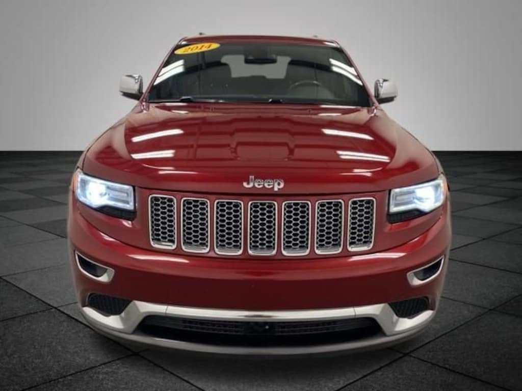 Clean CARFAX. Deep Cherry Red Crystal Pearlcoat 2014 Jeep Grand Cherokee Summit 4WD 8-Speed Automatic 5.7L V8 Multi Displacement VVT 4WD, Navigation System, 19 Speakers, 20" x 8.0" Polished Aluminum Wheels, 3.45 Rear Axle Ratio, 4-Wheel Disc Brakes, ABS brakes, Air Conditioning, Alloy wheels, AM/FM radio: SiriusXM, Anti-whiplash front head restraints, Audio memory, Auto High-beam Headlights, Auto-dimming door mirrors, Auto-dimming Rear-View mirror, Auto-leveling suspension, Automatic temperature control, Brake assist, Bumpers: body-color, Compass, Delay-off headlights, Driver door bin, Driver vanity mirror, Dual front impact airbags, Dual front side impact airbags, Electronic Stability Control, Emergency communication system: Uconnect guardian, Exterior Parking Camera Rear, Four wheel independent suspension, Front anti-roll bar, Front Bucket Seats, Front Center Armrest w/Storage, Front dual zone A/C, Front fog lights, Front reading lights, Fully automatic headlights, Garage door transmitter, Genuine wood dashboard insert, Headlight cleaning, Heated door mirrors, Heated front seats, Heated rear seats, Heated steering wheel, High intensity discharge headlights: Bi-Xenon, Illuminated entry, Knee airbag, Leather Shift Knob, Leather steering wheel, Leather Trimmed Bucket Seats, Low tire pressure warning, Memory seat, Normal Duty Suspension, Occupant sensing airbag, Outside temperature display, Overhead airbag, Overhead console, Panic alarm, Passenger door bin, Passenger vanity mirror, Power door mirrors, Power driver seat, Power Liftgate, Power moonroof, Power passenger seat, Power steering, Power windows, Radio data system, Radio: Uconnect 8.4AN AM/FM/SXM/HD/BT/NAV, Rain sensing wipers, Rear anti-roll bar, Rear reading lights, Rear seat center armrest, Rear window defroster, Rear window wiper, Remote keyless entry, Roof rack: rails only, Security system, Speed control, Speed-Sensitive Wipers, Split folding rear seat, Spoiler, Steering wheel mounted audio controls, Tachometer, Telescoping steering wheel, Tilt steering wheel, Traction control, Trip computer, Turn signal indicator mirrors, Variably intermittent wipers, Ventilated front seats, 4WD, Navigation System.