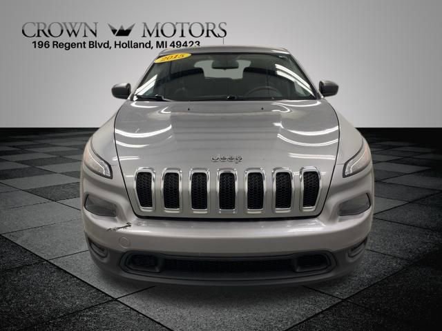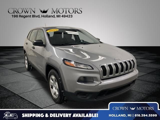 CARFAX One-Owner. Billet Silver Metallic Clearcoat 2015 Jeep Cherokee Sport 4WD 9-Speed 948TE Automatic 2.4L I4 MultiAir **LOCAL TRADE IN**, 4WD, 1-Year SiriusXM Radio Service, 3.73 Axle Ratio, 4-Wheel Disc Brakes, 6 Speakers, ABS brakes, Active Grille Shutters, AM/FM radio, Anti-whiplash front head restraints, Brake assist, Bumpers: body-color, Cloth Low-Back Bucket Seats, Compass, Delay-off headlights, Driver door bin, Driver vanity mirror, Dual front impact airbags, Dual front side impact airbags, Electronic Stability Control, Engine Oil Cooler, For More Info Call 800-643-2112, Four wheel independent suspension, Front anti-roll bar, Front Bucket Seats, Front Center Armrest, Front reading lights, GPS Antenna Input, Illuminated entry, Knee airbag, Low tire pressure warning, Manufacturer's Statement of Origin, No Satellite Coverage w/AK/HI, Normal Duty Suspension, Occupant sensing airbag, Outside temperature display, Overhead airbag, Overhead console, Panic alarm, Passenger door bin, Passenger vanity mirror, Power door mirrors, Power steering, Power windows, Quick Order Package 24A, Radio data system, Radio: Uconnect 5.0 AM/FM/BT, Rear anti-roll bar, Rear reading lights, Rear seat center armrest, Rear side impact airbag, Rear window defroster, Rear window wiper, Remote keyless entry, SIRIUSXM Satellite Radio, Speed control, Speed-sensing steering, Split folding rear seat, Spoiler, Tachometer, Telescoping steering wheel, Tilt steering wheel, Traction control, Trip computer, Variably intermittent wipers, Voltmeter, Wheels: 17" x 7" Full Face Steel, 4WD.