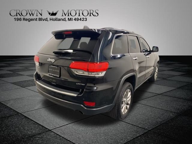 Brilliant Black Crystal Pearlcoat 2015 Jeep Grand Cherokee Limited 4WD 8-Speed Automatic 3.6L V6 24V VVT 4WD, 1-Yr SiriusXM Traffic Service, 1-Yr SIRIUSXM Travel Link Service, 18" x 8.0" Aluminum Polished Wheels, 3.45 Rear Axle Ratio, 4-Wheel Disc Brakes, 6 Month Trial (Registration Required), 6 Speakers, 8.4" Touchscreen Display, ABS brakes, Air Conditioning, Alloy wheels, AM/FM radio: SiriusXM, Anti-whiplash front head restraints, Audio memory, Auto-dimming door mirrors, Auto-dimming Rear-View mirror, Automatic temperature control, Brake assist, Bumpers: body-color, Compass, Delay-off headlights, Driver door bin, Driver vanity mirror, Dual front impact airbags, Dual front side impact airbags, Electronic Stability Control, Exterior Parking Camera Rear, For Details Visit DriveUconnect.com, Four wheel independent suspension, Front anti-roll bar, Front Bucket Seats, Front Center Armrest w/Storage, Front dual zone A/C, Front fog lights, Front reading lights, Fully automatic headlights, Garage door transmitter, GPS Antenna Input, GPS Navigation, HD Radio, Heated door mirrors, Heated front seats, Heated rear seats, Heated steering wheel, High Pressure Tires Tracking, Illuminated entry, Integrated Voice Command w/Bluetooth, Knee airbag, Leather Shift Knob, Low tire pressure warning, Memory seat, Normal Duty Suspension, Occupant sensing airbag, Outside temperature display, Overhead airbag, Overhead console, Panic alarm, Passenger door bin, Passenger vanity mirror, Power door mirrors, Power driver seat, Power Liftgate, Power passenger seat, Power steering, Power windows, Premium Leather Trimmed Bucket Seats, Quick Order Package 23H, Radio data system, Radio: Uconnect 5.0, Radio: Uconnect 8.4 NAV, Rear anti-roll bar, Rear Parking Sensors, Rear reading lights, Rear seat center armrest, Rear window defroster, Rear window wiper, Rear-View Auto-Dimming Mirror w/Microphone, Remote keyless entry, Roadside Assistance & 9-1-1 Call, Roof rack: rails only, Security system, SIRIUSXM Satellite Radio, SIRIUSXM Traffic, SiriusXM Travel Link, Speed control, Speed-Sensitive Wipers, Split folding rear seat, Spoiler, Steering wheel mounted audio controls, Tachometer, Telescoping steering wheel, Tilt steering wheel, Traction control, Trip computer, Turn signal indicator mirrors, Uconnect Access, Variably intermittent wipers, 4WD.
