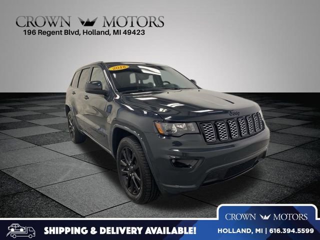 Clean CARFAX. Rhino Clearcoat 2018 Jeep Grand Cherokee Altitude 4WD 8-Speed Automatic 3.6L V6 24V VVT **ACCIDENT FREE**, **LOCAL TRADE IN**, 4WD, 1-Year SiriusXM Guardian Trial, 1-Year SiriusXM Radio Service, 115V Auxiliary Power Outlet, 3.45 Rear Axle Ratio, 4-Wheel Disc Brakes, 5-Year SiriusXM Traffic Service, 5-Year SiriusXM Travel Link Service, 6 Speakers, 8.4" Touchscreen Display, 9 Amplified Speakers w/Subwoofer, ABS brakes, Air Conditioning, Alloy wheels, Altitude Grille, Altitude IV Package, AM/FM radio, Anti-whiplash front head restraints, Apple CarPlay, Apple CarPlay/Android Auto, Auto-Dimming Rear-View Mirror, Automatic temperature control, Black Suede Seats w/Black Stitching, Body Color Claddings, Body Color Fascia, Body Color Shark Fin Antenna, Brake assist, Bumpers: body-color, Cargo Compartment Cover, Cloth Bucket Seats, Compass, Dark Day Light Opening Moldings, Dark Headlamp Bezel Finish, Dark Lens Taillamps, Delay-off headlights, Delete Laredo Badge, Driver door bin, Driver vanity mirror, Dual front impact airbags, Dual front side impact airbags, Electronic Stability Control, For Details Visit DriveUconnect.com, Four wheel independent suspension, Front Accent/Body Color Fascia, Front anti-roll bar, Front Bucket Seats, Front Center Armrest w/Storage, Front dual zone A/C, Front fog lights, Front reading lights, Fully automatic headlights, Gloss Black Rear Fascia Applique, Google Android Auto, GPS Antenna Input, GPS Navigation, HD Radio, Heated door mirrors, Illuminated entry, Integrated Voice Command w/Bluetooth, Jeep Black Gloss Badging, Knee airbag, Leather Shift Knob, Low tire pressure warning, Normal Duty Suspension, Occupant sensing airbag, Outside temperature display, Overhead airbag, Overhead console, Panic alarm, ParkView Rear Back-Up Camera, Passenger door bin, Passenger vanity mirror, Power 4-Way Driver Lumbar Adjust, Power 8-Way Driver/Manual Passenger Seat, Power door mirrors, Power Liftgate, Power steering, Power windows, Quick Order Package 2BZ Altitude, Radio data system, Radio: Uconnect 4 w/7" Display, Radio: Uconnect 4C Nav w/8.4" Display, Rear Accent/Body Color Fascia, Rear anti-roll bar, Rear Fascia Black MIC Step Pad, Rear reading lights, Rear seat center armrest, Rear window defroster, Rear window wiper, Remote keyless entry, Security & Convenience Group, Security Alarm, Single Exhaust w/Bright Tip, SiriusXM Satellite Radio, SiriusXM Traffic Plus, SiriusXM Travel Link, Speed control, Speed-Sensitive Wipers, Split folding rear seat, Spoiler, Steering Wheel Mounted Audio Controls, Steering wheel mounted audio controls, Tachometer, Telescoping steering wheel, Tilt steering wheel, Traction control, Trip computer, Universal Garage Door Opener, USB Host Flip, Variably intermittent wipers, Wheels: 17" x 8.0" Silver Aluminum, Wheels: 20" x 8.0" Gloss Black Aluminum, 4WD.