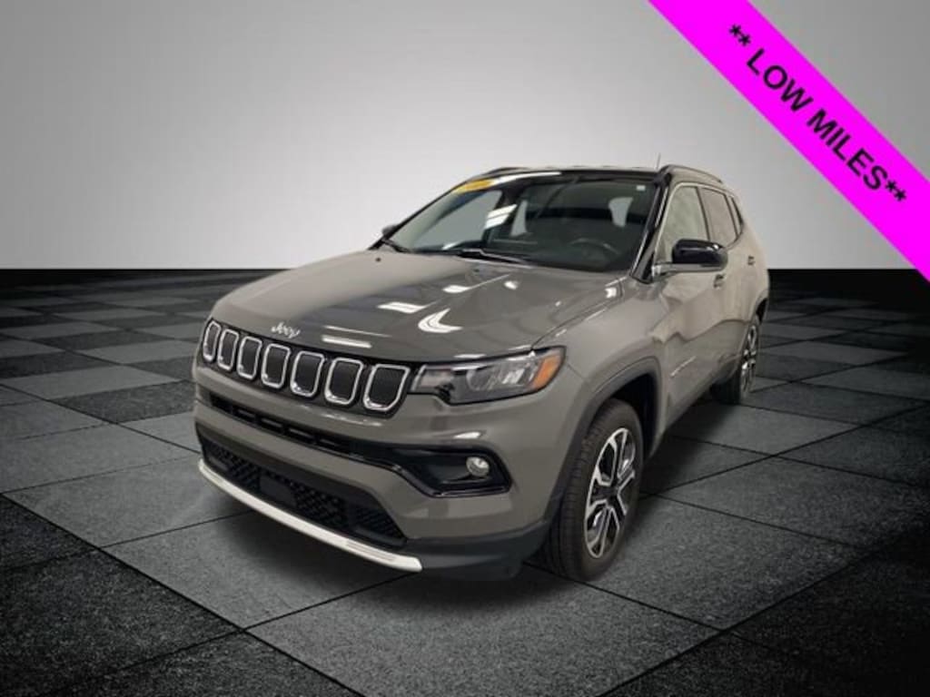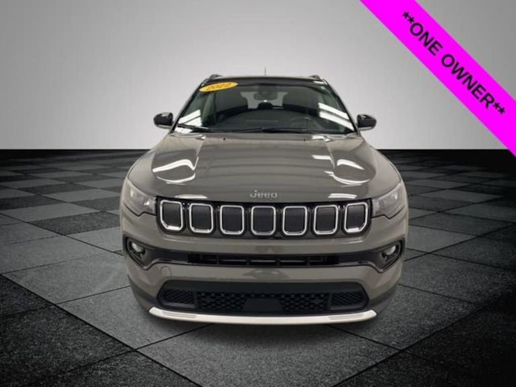 CARFAX One-Owner. Clean CARFAX. Sting-Gray Clearcoat 2022 Jeep Compass Limited 4WD 9-Speed 948TE Automatic 2.4L I4 **ONE OWNER**, ** LOW MILES**, **ACCIDENT FREE**, 4WD, Quick Order Package 2GG, 10.1" Touchscreen Display, 3.73 Axle Ratio, 4-Wheel Disc Brakes, 6 Speakers, ABS brakes, Air Conditioning, Alloy wheels, AM/FM radio: SiriusXM, Anti-whiplash front head restraints, Auto High-beam Headlights, Auto-dimming Rear-View mirror, Automatic temperature control, Brake assist, Bumpers: body-color, Compass, Delay-off headlights, Disassociated Touchscreen Display, Driver door bin, Driver vanity mirror, Dual front impact airbags, Dual front side impact airbags, Electronic Stability Control, Emergency communication system: SiriusXM Guardian, Four wheel independent suspension, Front anti-roll bar, Front Bucket Seats, Front Center Armrest w/Storage, Front dual zone A/C, Front fog lights, Front reading lights, Fully automatic headlights, Global Telematics Box Module (TBM), Gloss Black Exterior Mirrors, Heated door mirrors, Heated front seats, Heated steering wheel, Illuminated entry, Knee airbag, Leather Shift Knob, Leather Trimmed Bucket Seats, Low tire pressure warning, Occupant sensing airbag, Outside temperature display, Overhead airbag, Overhead console, Panic alarm, ParkView Rear Back-Up Camera, Passenger door bin, Passenger vanity mirror, Power door mirrors, Power driver seat, Power steering, Power windows, Radio: Uconnect 5 w/10.1" Display, Rain sensing wipers, Rear anti-roll bar, Rear seat center armrest, Rear window defroster, Rear window wiper, Remote keyless entry, Roof rack: rails only, Security system, Speed control, Split folding rear seat, Spoiler, Steering wheel mounted audio controls, Tachometer, Telescoping steering wheel, Tilt steering wheel, Traction control, Trip computer, Turn signal indicator mirrors, Variably intermittent wipers, Wheels: 18" x 7" Painted Diamond Cut Aluminum, 4WD, Quick Order Package 2GG.