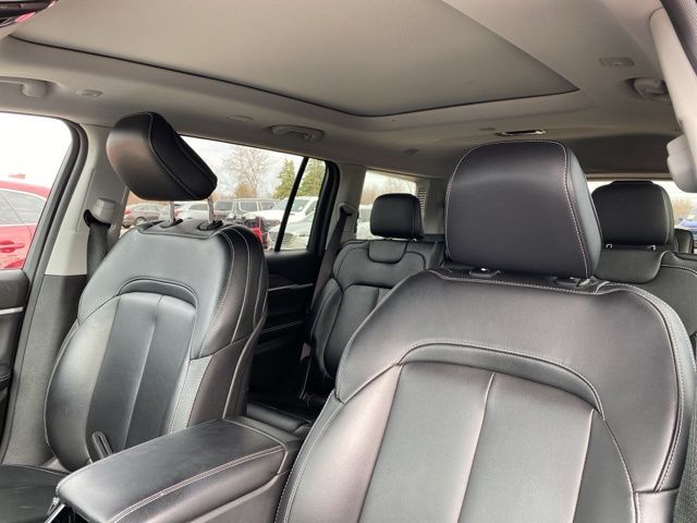Seven passengers. Capri leatherette throughout. Heated front and rear seats. Heated steering wheel with memory. Dual-pane panoramic sunroof. Interior rear-facing camera. Rear air conditioning. Reclining split-bench third row with manual tip and slide second row for easy access. Power liftgate. Active noise control for a quieter cabin on longer drives. This is a three-row SUV configured for families who actually use all three rows.