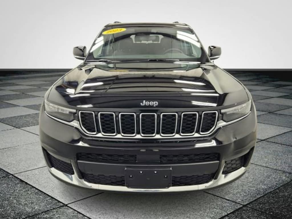 CARFAX One-Owner. Clean CARFAX. Diamond Black Crystal Pearlcoat 2023 Jeep Grand Cherokee L Limited 4WD 8-Speed Automatic 3.6L V6 24V VVT **ONE OWNER**, ** LOW MILES**, **ACCIDENT FREE**, Grand Cherokee L Limited, 4WD, 3.45 Rear Axle Ratio, 3rd row seats: split-bench, 4-Wheel Disc Brakes, 6 Speakers, ABS brakes, Active Noise Control System, Air Conditioning, Alloy wheels, AM/FM radio: SiriusXM with 360L, Anti-whiplash front head restraints, Audio memory, Auto High-beam Headlights, Automatic temperature control, Brake assist, Bumpers: body-color, Capri Leatherette Seats, Compass, Delay-off headlights, Driver door bin, Driver vanity mirror, Dual front impact airbags, Dual front side impact airbags, Dual-Pane Panoramic Sunroof, Electronic Stability Control, Emergency communication system, Four wheel independent suspension, Front anti-roll bar, Front Bucket Seats, Front Center Armrest w/Storage, Front dual zone A/C, Front fog lights, Front License Plate Bracket, Front reading lights, Fully automatic headlights, Garage door transmitter, Heated door mirrors, Heated front seats, Heated rear seats, Heated steering wheel, Illuminated entry, Interior Rear Facing Camera, Knee airbag, Low tire pressure warning, Manual Fold Seatbacks, Memory seat, Molded In Color Black/Gloss Black Roof Rails, MOPAR Finishing Package, MOPAR Front Splash Guards, MOPAR Paint Protection Film, MOPAR Rear Splash Guards w/Jeep Logo, Navigation System, Normal Duty Suspension, Occupant sensing airbag, Outside temperature display, Overhead airbag, Overhead console, Panic alarm, ParkView Rear Back-Up Camera, Passenger door bin, Passenger vanity mirror, Power door mirrors, Power driver seat, Power Liftgate, Power passenger seat, Power steering, Power windows, Quick Order Package 23E, Radio data system, Radio: Uconnect 5 Nav w/10.1" Display, Rear air conditioning, Rear anti-roll bar, Rear reading lights, Rear window defroster, Rear window wiper, Reclining 3rd row seat, Remote keyless entry, Security system, Speed control, Speed-Sensitive Wipers, Split folding rear seat, Spoiler, Steering wheel mounted audio controls, Tachometer, Telescoping steering wheel, Tilt steering wheel, Traction control, Trip computer, Turn signal indicator mirrors, Variably intermittent wipers, Voltmeter, Wheels: 18" x 8.0" Fully Painted Aluminum, Grand Cherokee L Limited, 4WD.