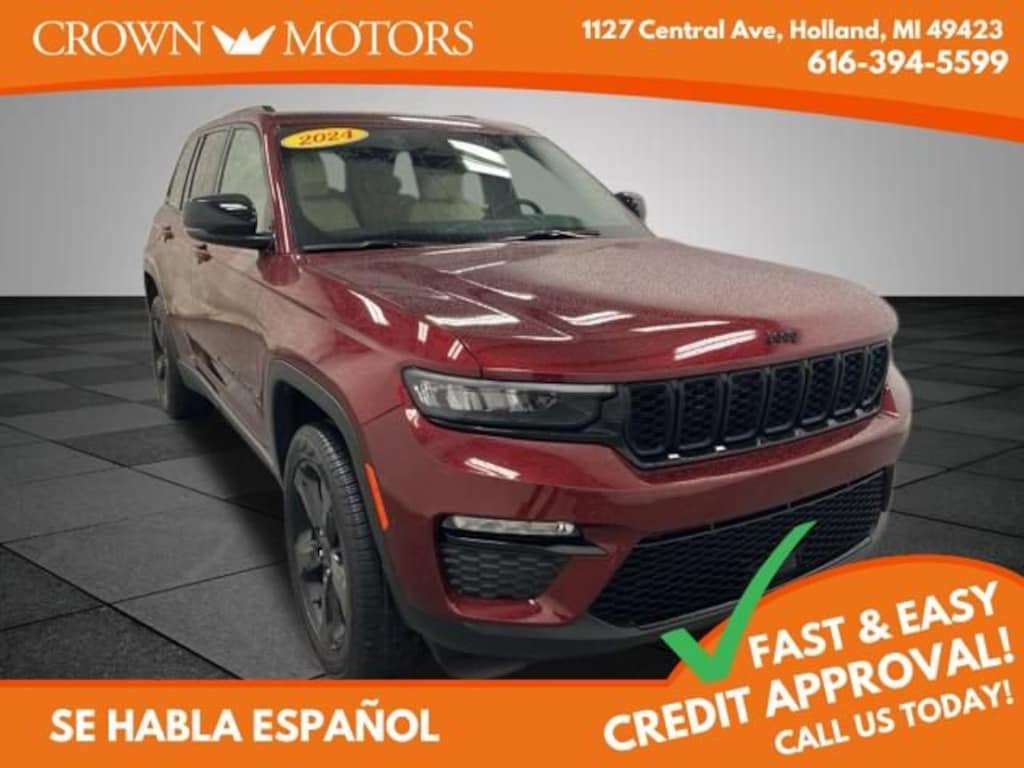 CARFAX One-Owner. Velvet Red Pearlcoat 2024 Jeep Grand Cherokee Limited 4WD 8-Speed Automatic 3.6L V6 24V VVT 4WD, Black Appearance Package, Gloss Black Exterior Accents, Navigation System, Quick Order Package 22E, Wheels: 20" x 8.5" Gloss Black Painted Aluminum, 3.45 Rear Axle Ratio, 4-Wheel Disc Brakes, 6 Speakers, ABS brakes, Active Noise Control System, Air Conditioning, Alloy wheels, AM/FM radio: SiriusXM with 360L, Anti-whiplash front head restraints, Audio memory, Auto High-beam Headlights, Automatic temperature control, Brake assist, Bumpers: body-color, Capri Leatherette Seats, Compass, Delay-off headlights, Driver door bin, Driver vanity mirror, Dual front impact airbags, Dual front side impact airbags, Dual-Pane Panoramic Sunroof, Electronic Stability Control, Emergency communication system, Four wheel independent suspension, Front anti-roll bar, Front Bucket Seats, Front Center Armrest w/Storage, Front dual zone A/C, Front fog lights, Front reading lights, Fully automatic headlights, Garage door transmitter, Heated door mirrors, Heated front seats, Heated rear seats, Heated steering wheel, Illuminated entry, Knee airbag, Low tire pressure warning, Memory seat, Normal Duty Suspension, Occupant sensing airbag, Outside temperature display, Overhead airbag, Overhead console, Panic alarm, ParkView Rear Back-Up Camera, Passenger door bin, Passenger vanity mirror, Power door mirrors, Power driver seat, Power Liftgate, Power passenger seat, Power steering, Power windows, Radio data system, Radio: Uconnect 5 Nav w/10.1" Display, Rear anti-roll bar, Rear reading lights, Rear window defroster, Rear window wiper, Remote keyless entry, Security system, Speed control, Speed-Sensitive Wipers, Split folding rear seat, Spoiler, Steering wheel mounted audio controls, Tachometer, Telescoping steering wheel, Tilt steering wheel, Traction control, Trip computer, Turn signal indicator mirrors, Variably intermittent wipers, Voltmeter, Wheels: 18" x 8" Polished/Painted Aluminum, 4WD, Black Appearance Package, Gloss Black Exterior Accents, Navigation System, Quick Order Package 22E, Wheels: 20" x 8.5" Gloss Black Painted Aluminum.