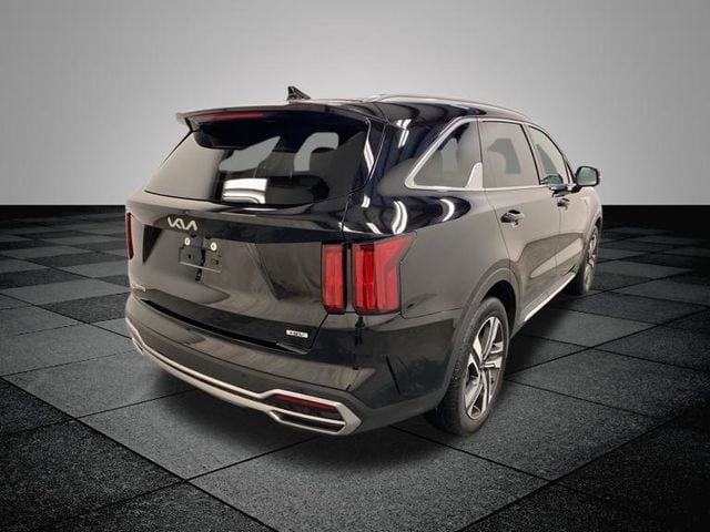 CARFAX One-Owner. Clean CARFAX. Aurora Black 2023 Kia Sorento Hybrid SX Prestige AWD 6-Speed Automatic 1.6L I4 DGI Hybrid Turbocharged DOHC 16V LEV3-ULEV70 1.6L I4 DGI Hybrid Turbocharged DOHC 16V LEV3-ULEV70, 12 Speakers, 3rd row seats: split-bench, 4-Wheel Disc Brakes, ABS brakes, Air Conditioning, Alloy wheels, AM/FM radio: SiriusXM, Apple CarPlay & Android Auto, Auto High-beam Headlights, Auto-dimming Rear-View mirror, Automatic temperature control, Axle Ratio: 3.510, Brake assist, Bumpers: body-color, Carpet Floor Mats, Delay-off headlights, Driver door bin, Driver vanity mirror, Dual front impact airbags, Dual front side impact airbags, Electronic Stability Control, Emergency communication system, Four wheel independent suspension, Front anti-roll bar, Front Bucket Seats, Front Center Armrest, Front dual zone A/C, Front fog lights, Front reading lights, Fully automatic headlights, Garage door transmitter: HomeLink, Heated & Ventilated Front Bucket Seats, Heated door mirrors, Heated front seats, Heated rear seats, Heated steering wheel, Illuminated entry, Illuminated Scuff Plates, Knee airbag, Leather steering wheel, Low tire pressure warning, Memory seat, Navigation System, Occupant sensing airbag, Outside temperature display, Overhead airbag, Overhead console, Panic alarm, Passenger door bin, Passenger vanity mirror, Perforated Genuine Leather Seat Trim, Power door mirrors, Power driver seat, Power Liftgate, Power passenger seat, Power steering, Power windows, Radio data system, Radio: AM/FM/HD Radio/SiriusXM Audio System, Rain sensing wipers, Rear air conditioning, Rear anti-roll bar, Rear reading lights, Rear window defroster, Rear window wiper, Remote keyless entry, Roof rack: rails only, Security system, Smart Key w/ Push Button and Remote Start, Speed control, Speed-sensing steering, Split folding rear seat, Spoiler, Steering wheel mounted audio controls, Tachometer, Telescoping steering wheel, Tilt steering wheel, Traction control, Trip computer, Turn signal indicator mirrors, Variably intermittent wipers, Ventilated front seats, Wheels: 19" Machine-Finished Alloy, 1.6L I4 DGI Hybrid Turbocharged DOHC 16V LEV3-ULEV70.