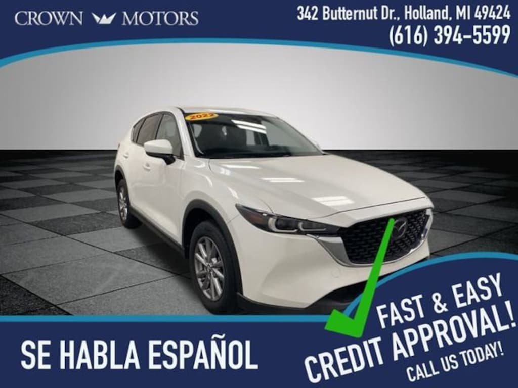 Snowflake White Pearl Mica 2022 Mazda CX-5 2.5 S Select Package AWD 6-Speed Automatic SKYACTIV® 2.5L 4-Cylinder DOHC 16V AWD, 4-Wheel Disc Brakes, 4.624 Axle Ratio, 6 Speakers, ABS brakes, Air Conditioning, Alloy wheels, AM/FM radio, AppLink/Apple CarPlay and Android Auto, Auto High-beam Headlights, Automatic temperature control, Brake assist, Bumpers: body-color, Cargo Storage Shelf, Delay-off headlights, Driver door bin, Driver vanity mirror, Dual front impact airbags, Dual front side impact airbags, E911 Automatic Emergency Notification, Electronic Stability Control, Emergency communication system: MAZDA CONNECT, Exterior Parking Camera Rear, Four wheel independent suspension, Front anti-roll bar, Front Bucket Seats, Front Center Armrest w/Storage, Front dual zone A/C, Front reading lights, Fully automatic headlights, Heated Front Bucket Seats, Heated front seats, Illuminated entry, Infotainment System Voice Command, Leather Shift Knob, Leatherette Seat Trim, Low tire pressure warning, Multifunction Commander Control, Occupant sensing airbag, Outside temperature display, Overhead airbag, Overhead console, Pandora, Panic alarm, Passenger door bin, Passenger vanity mirror, Power door mirrors, Power driver seat, Power steering, Power windows, Radio Broadcast Data System Program Information, Radio data system, Radio: AM/FM/HD Audio System, Rain sensing wipers, Rear anti-roll bar, Rear reading lights, Rear seat center armrest, Rear window defroster, Rear window wiper, Remote keyless entry, SMS Text Msg Audio Delivery & Reply, Snowflake White Pearl Mica Paint, Speed control, Speed-sensing steering, Split folding rear seat, Spoiler, Steering wheel mounted audio controls, Tachometer, Telescoping steering wheel, Tilt steering wheel, Traction control, Trip computer, Turn signal indicator mirrors, Variably intermittent wipers, Wheels: 17" x 7J Aluminum Alloy, AWD.